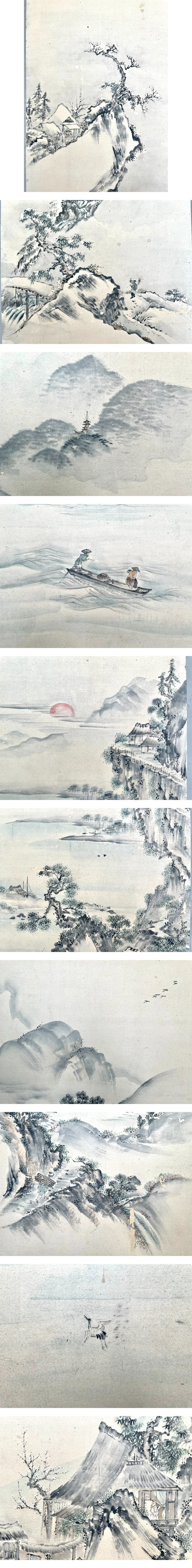 A127【真作】長塩雪山 山水画 人物画 花鳥画 船 鶴 六曲屏風 六曲半双 時代屏風 間仕切 半双 折畳 折り畳み 衝立 つい立 背景 [浏览原始页面]
