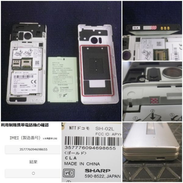| A1-20◆docomo SH-02 ゴールド AQUOS 4Gガラホ ケータイ SHARP ガラケー 利用制限〇 卓上ホルダ・ACアダプタ付 |