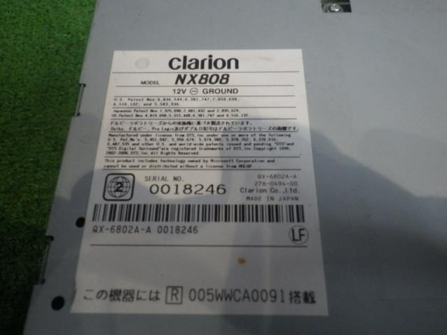 | 備考 | シャガイ、Clarion、DVD、CD、ラジオ/NX808/GPS不安定でジャンク品、シリアルNo.0018246 | ||||