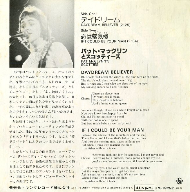 タイトルDaydream Believer デイドリーム / If I Could Be Your Man 恋は蜃気楼 (1978年・CM-1095・THE MONKEESカヴァー)