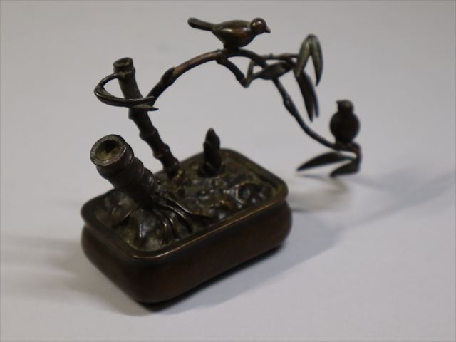 本物保証。素晴らしい美術館級 龍文堂 安之介造 古銅製盆栽形文鎮です。状態良好です。