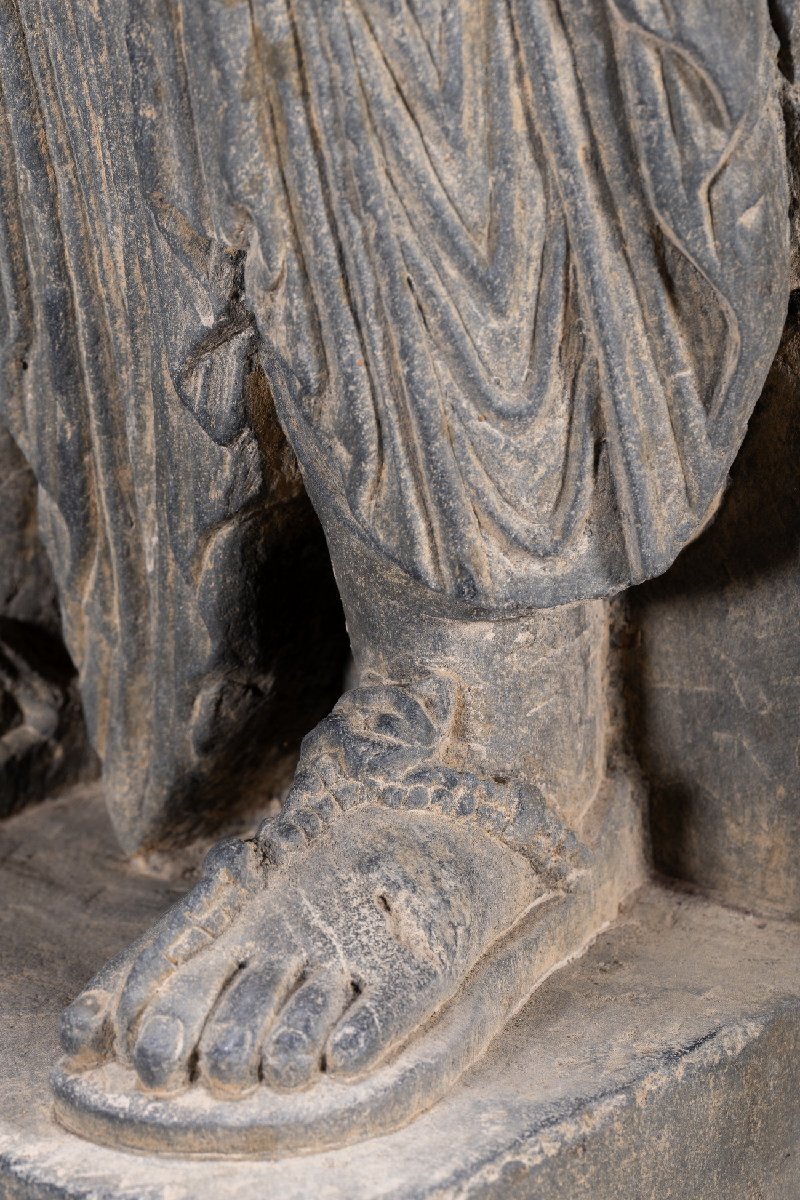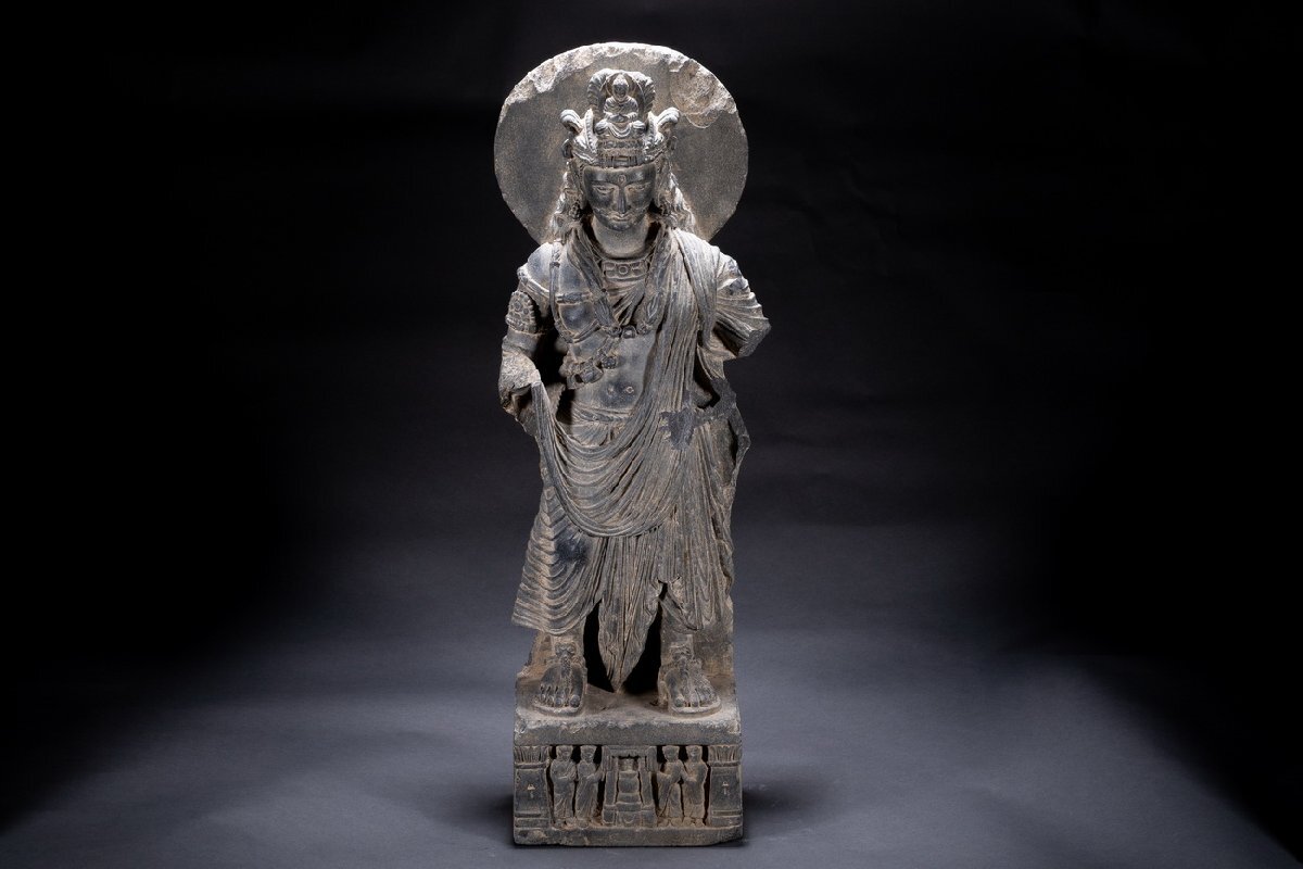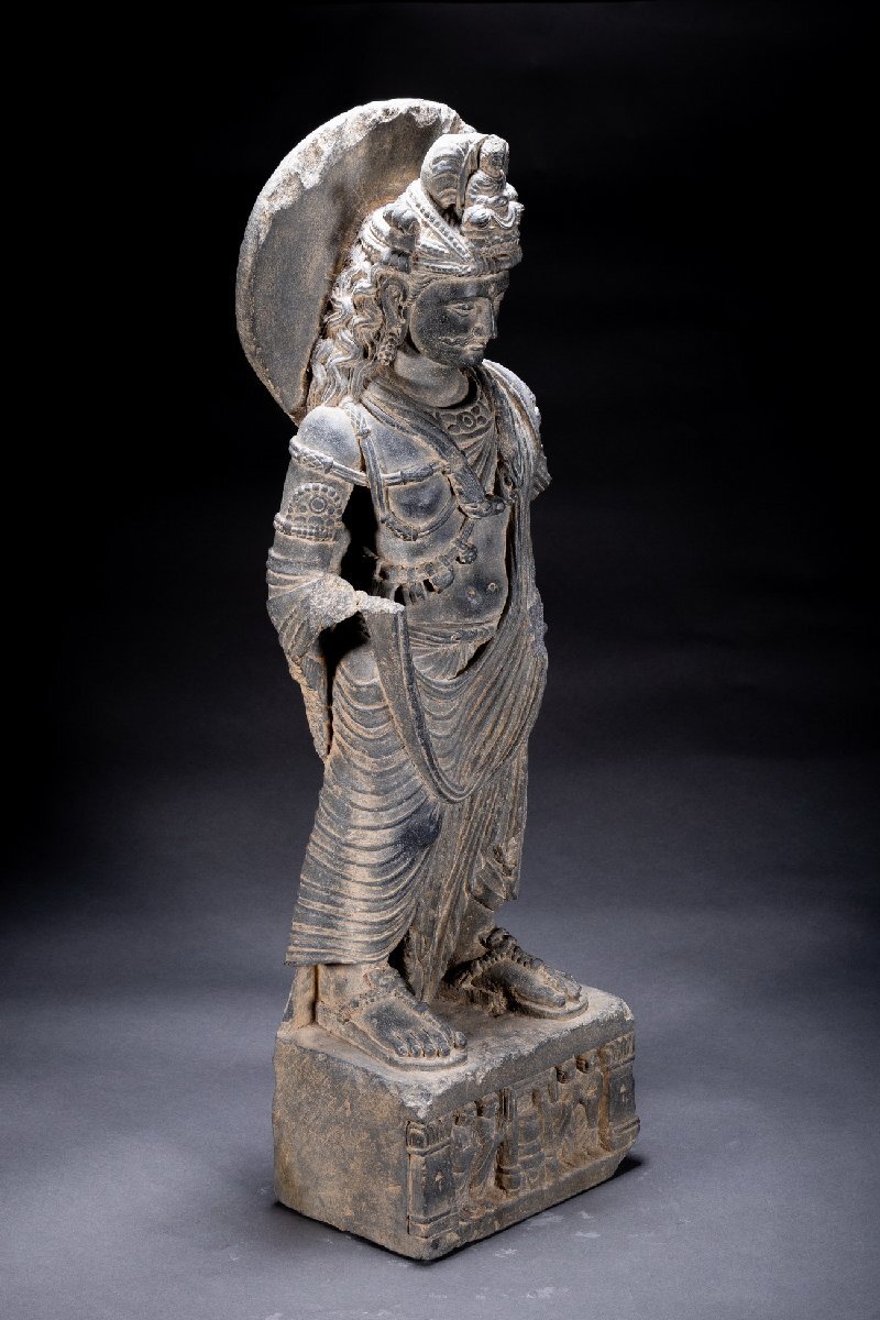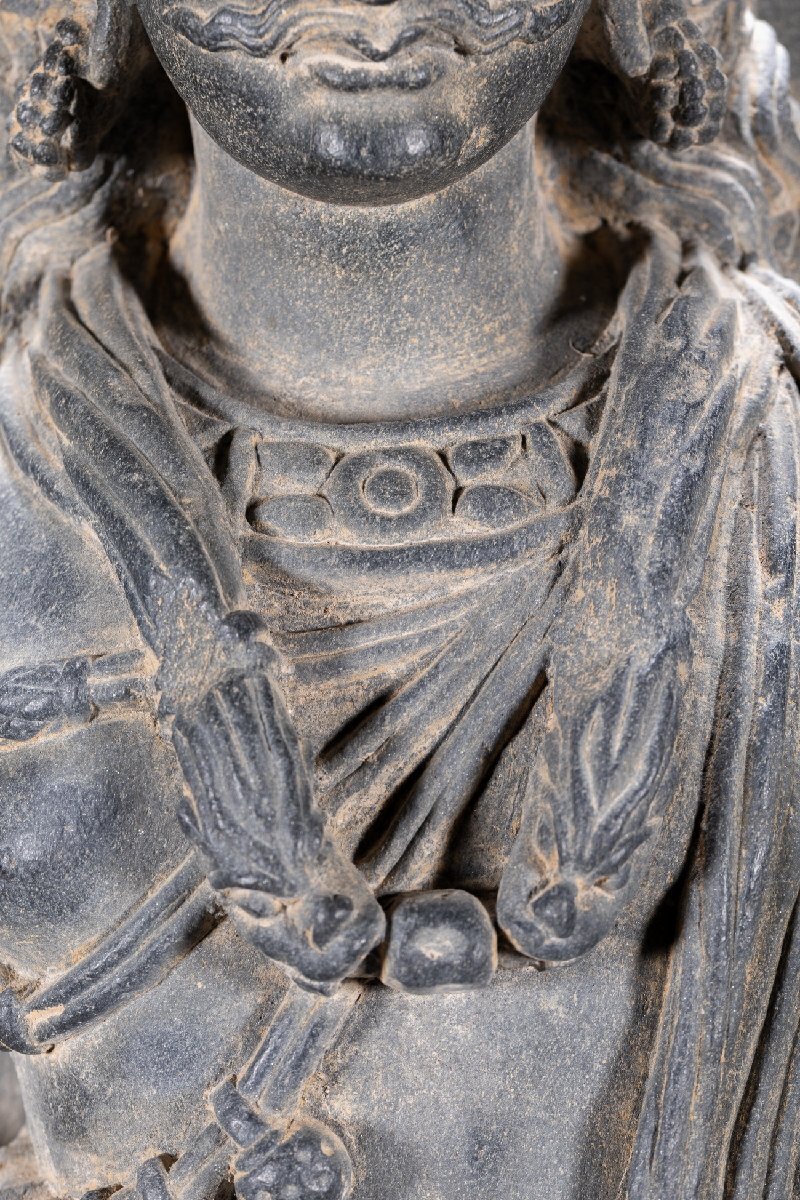 【雲錦】某有名オークション購入 紀元1~2世紀 灰色片岩 ガンダーラ立像38.6㎏ 極細工 仏教古美術 時代仏像7L8-80