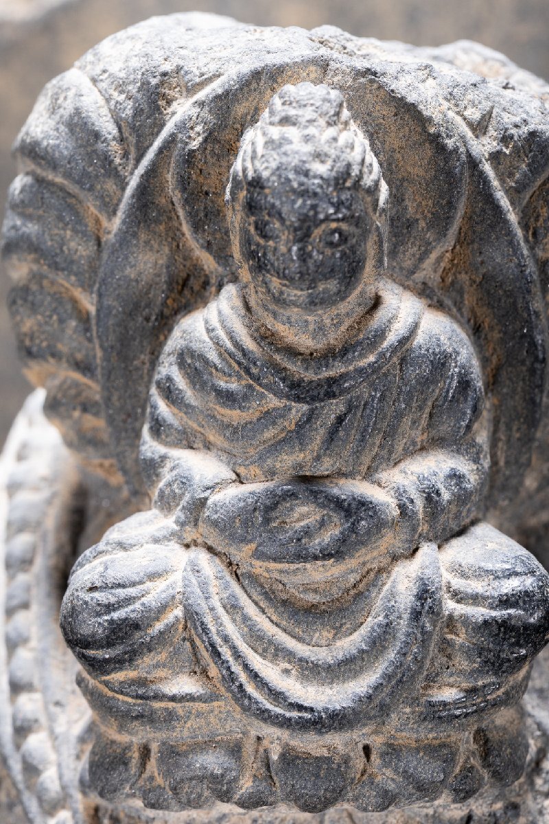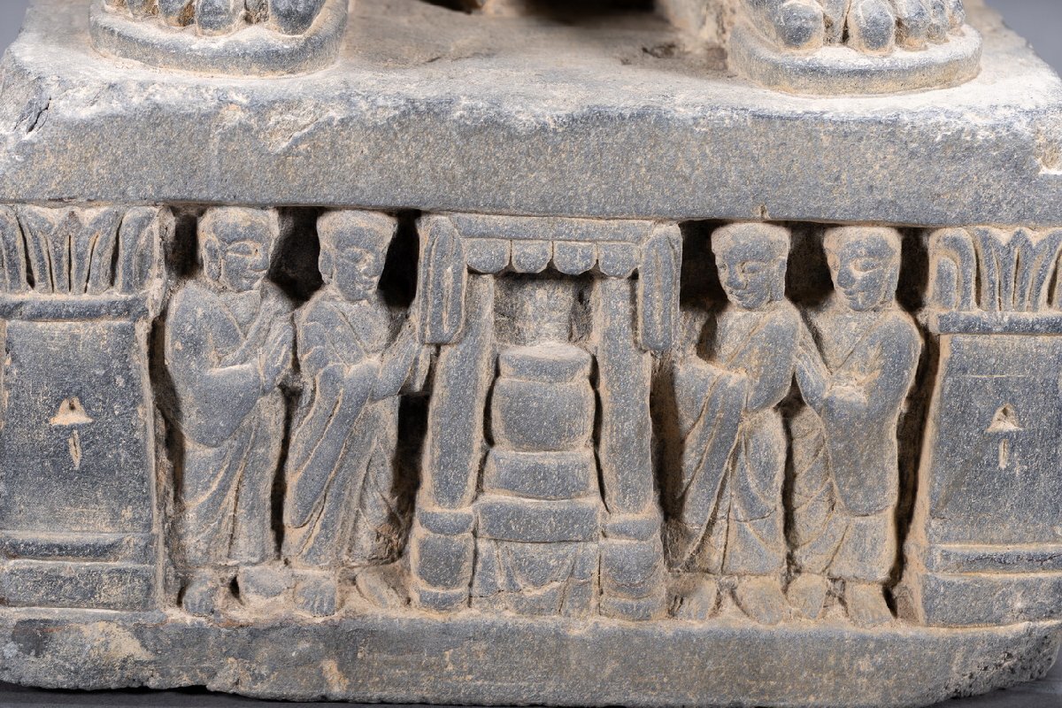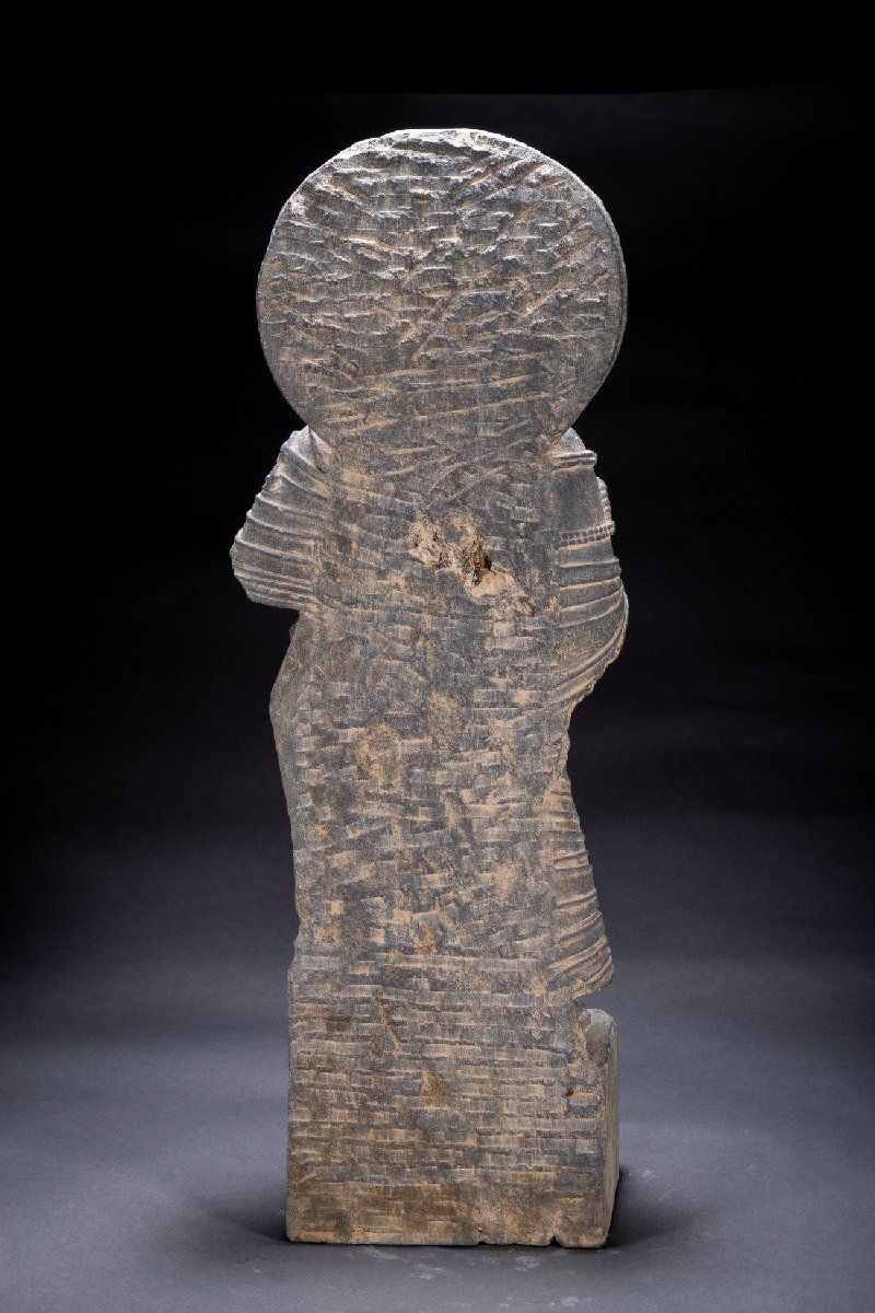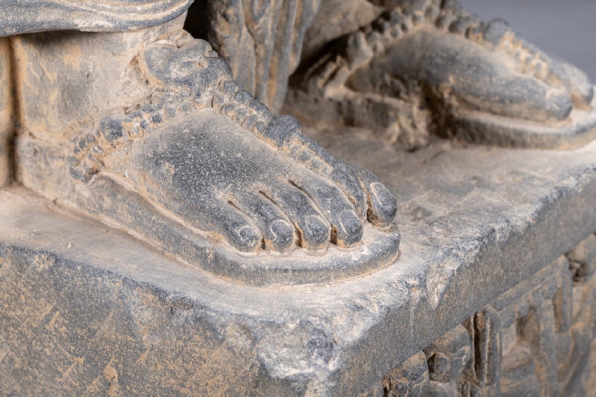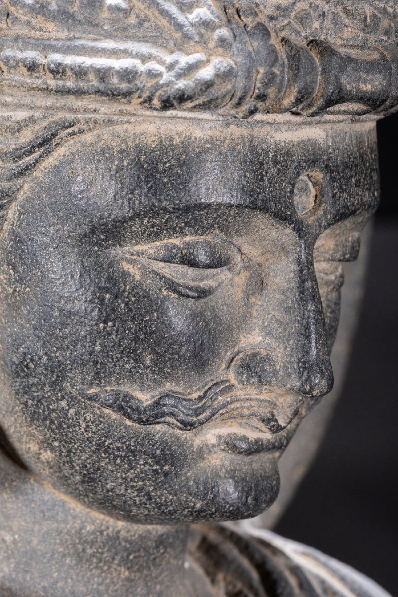 【雲錦】某有名オークション購入 紀元1~2世紀 灰色片岩 ガンダーラ立像38.6㎏ 極細工 仏教古美術 時代仏像7L8-80