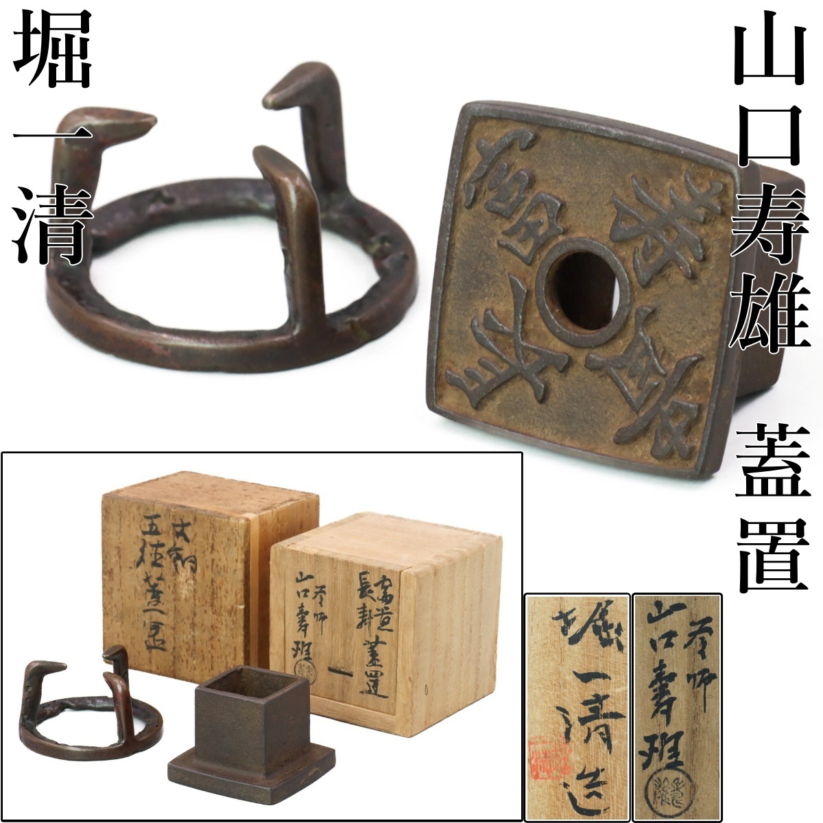 【宙】釜師 山口寿雄・堀一清 鉄地 五徳蓋置 富貴長寿蓋置 二点まとめて 共箱 茶道具 端正な鋳肌と技巧 高岡鋳物 [D]10NT10.o.7.6.A [浏览原始页面]