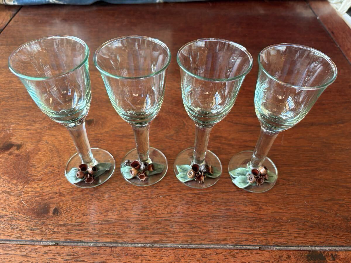 ワイングラス(リキュールグラス)4脚セット、台座に木の実や葉を模した装飾が施されています。| 出价者 | 信用 | 价格 | 时间 |