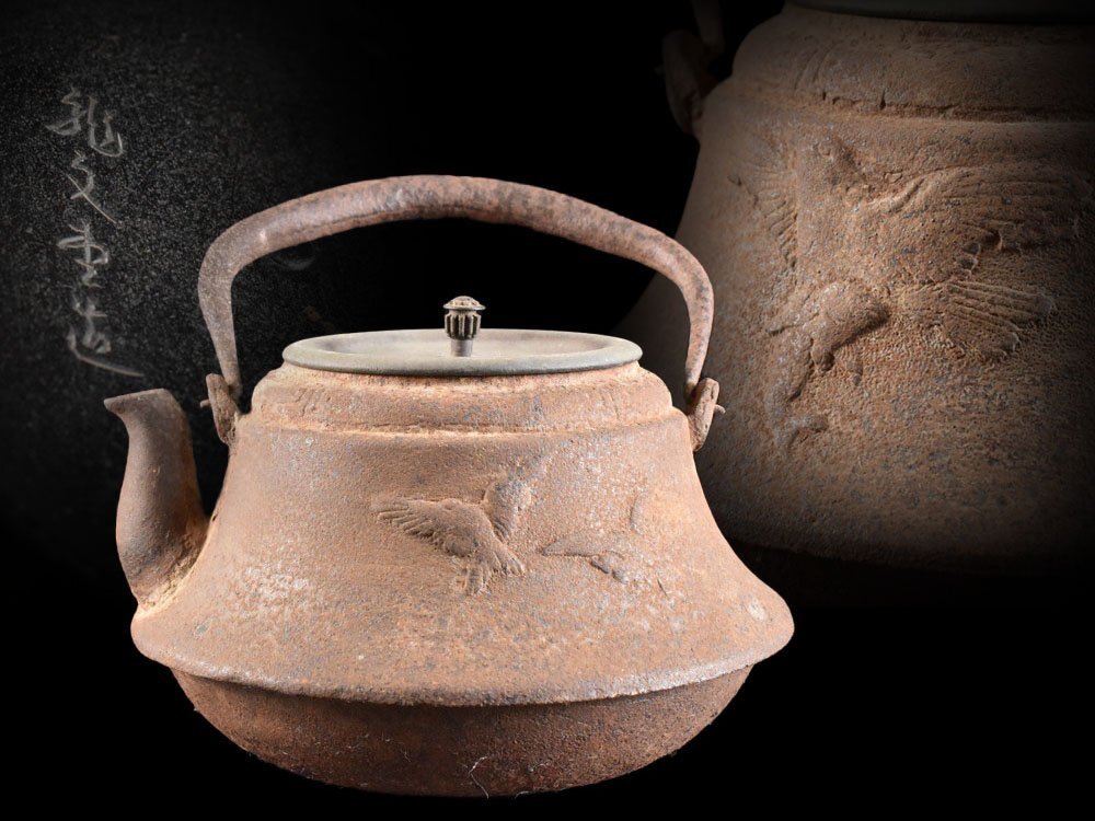 | 商品名 | 【雲】某有名収集家買取品 時代 龍文堂 古鉄 富士形 鶴浮彫 小鉄瓶 古美術品(釜師 大國 茶道具)Y7432 OTjhgi |