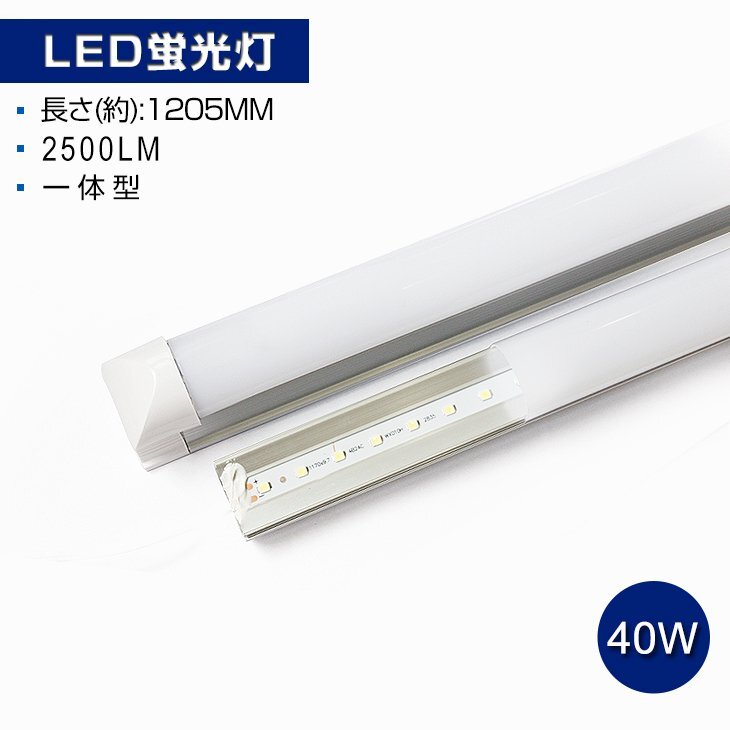 T8 一体型直管形蛍光灯40W形対応、2500ルーメンLED蛍光灯です。発光効率が高い! ◆優れたLEDチップ採用: 驚異的な照射能力と耐久性が持ってます。ムラなく均一の発光で、すっきりと対象物を照らします。 ◆発光源は精銅スタンドを採用します: 熱伝導性と導電性は普通より優れた。チップの発熱量は最小限になります。高輝度低光減衰の特典:3000時間で光減衰率は2%左右です。優れた静電気保護で50000時間以上の長寿命をもつ。 ◆驚きの長寿命: LEDの放熱率が少ない、光衰えも低い、寿命は一層長くなります。 ◆航空アルミを採用: 航空アルミニウムを採用して散熱性能は強くなり、熱で変形しにくいです。 ◆安全性が高い: