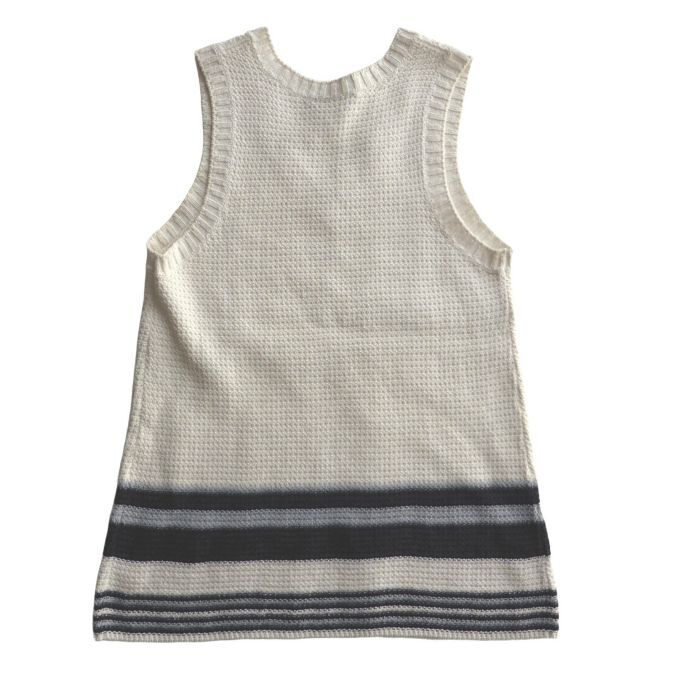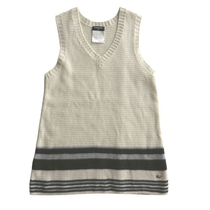 | シャネル(CHANEL) ペーパー×コットン×シルク 鹿の子編み ニットベスト ボーダー MC007 34 ホワイト P53641 ウェア(中古) |