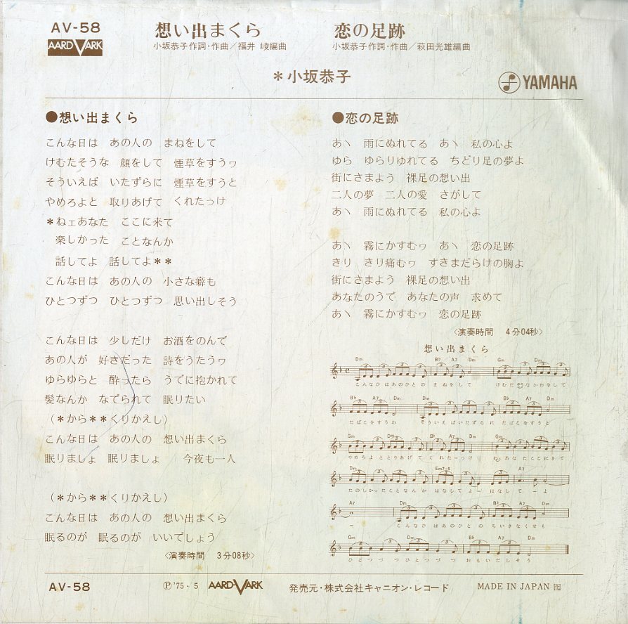 C00170892/EP/小坂恭子「想い出まくら/恋の足跡(1975年)」 [浏览原始页面]