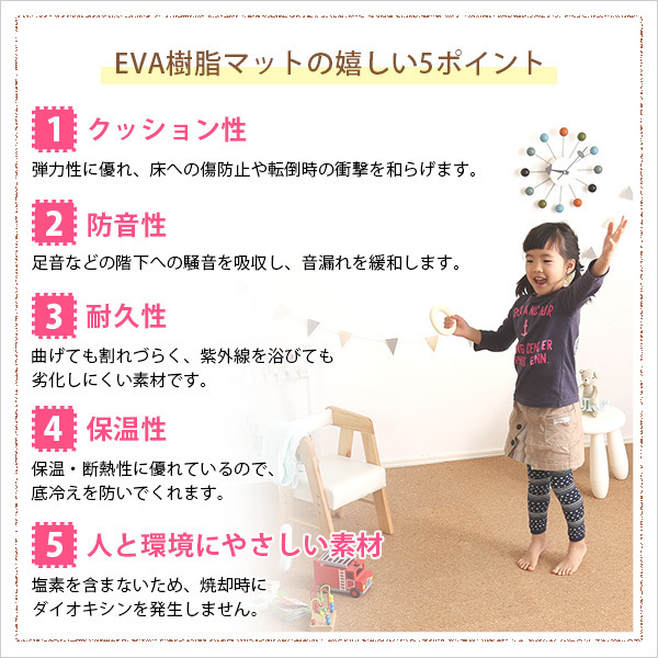 【ポイント】 大粒の天然コルクを使用したジョイントコルクマット48枚タイプです。 衝撃を吸収するEVA樹脂だから防音効果や保温効果があります。 安心して使える低ホルムアルデヒド商品、水洗いできるから、汚れても安心♪ レイアウトしやすいサイドパーツ付きです。 |