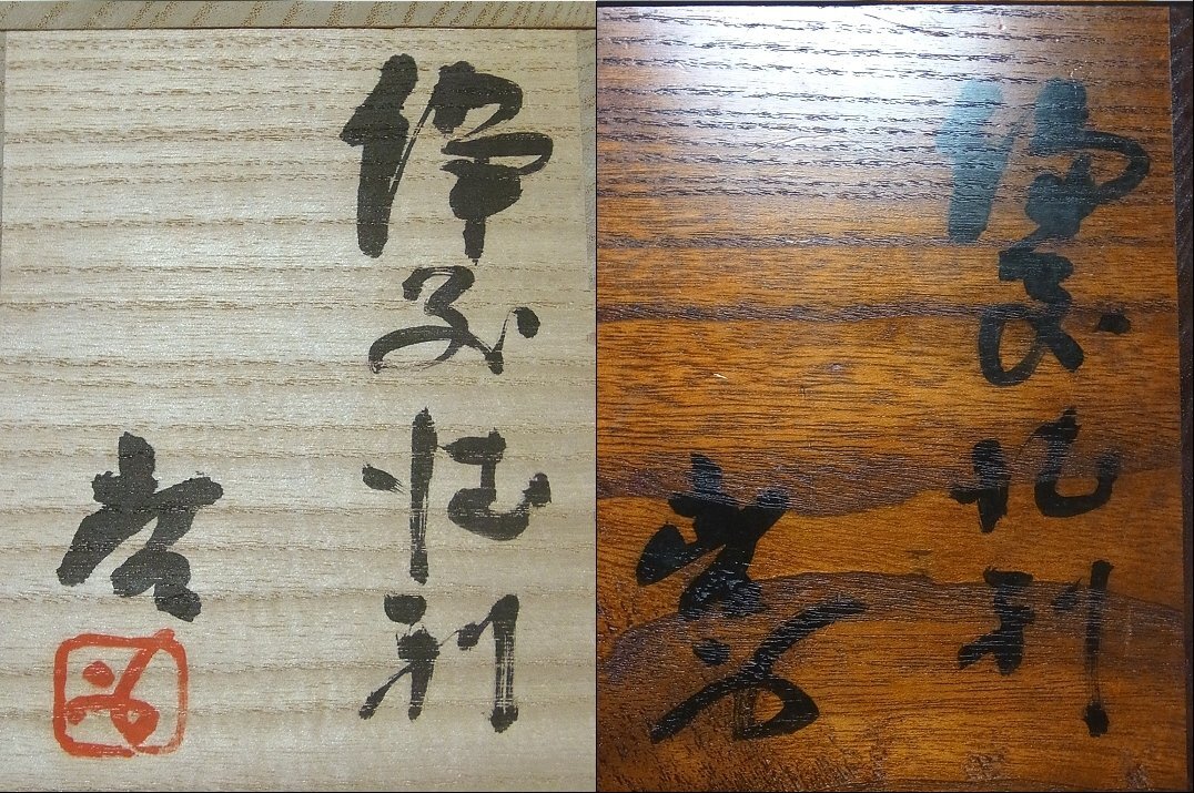 人間国宝 藤原啓 備前徳利 共箱 共二重箱でございます。 微妙に座りが落ち着きませんが、その他は特に気になるような難は見られず、 至って良好な状態です。 経年保管のお品ですので、保管に伴う経年変化はご理解ください。 胴下部に陶印を確認致しました。 お品寸約 H 12.2cm 共箱でございます。 お品は保障させていただきますので、レブリカや贋作の類だった場合や 説明と違う状態だった場合は返品はもちろん、送料や振込み手数料を当店で 負担させていただきます。 どうぞ宜しくお願い致します。 ※齊藤商店は創業75年の美術商です。ホームページは【こちら】をご覧ください。(外部サイト) 他にもいろいろと出品しておりますので下記バナーをご覧下さいませ。 ![]() |