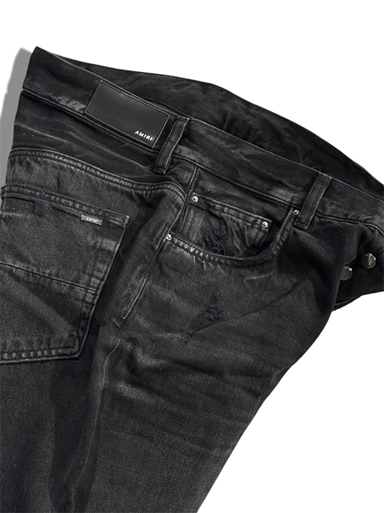 2013年にスタートした 《 AMIRI - アミリ - 》は、エフォートレスでクールなストリートウェアを得意とする L.A の人気レーベル。 創設者 Mike Amiri の子供時代を形作ったサブカルチャーをインスピレーションに、芸術性に富むダメージ加工のデニムジャケットや、 バイカージーンズ、グラフィックTシャツなど、アンダーグラウンドパンクとハリウッドに影響を受けたアイテムが特徴です。 ラグジュアリーかつ脱構築的なアーバンエッセンシャルを提供しております。 そんな 《 AMIRI - アミリ - 》の、洒落感と貫禄を両立させた、ブラックデニムパンツです。 まるで長年愛用したかのように自然にフェードした漆黒のトーンは、男の色気を演出。 ハード過ぎない、しかし確実に奥行きを感じさせる生地のシワ感やアタリは、大人の余裕と遊び心を感じさせます。 タイトすぎないストレートシルエットは、大人の余裕と貫禄を感じさせつつ、脚長効果も抜群です。 アウターを脱いだ時、またはシャツをタックインした時に、確かなブランドステータスを主張。 週末のドライブから、ちょっとリッチなディナーまで。本物の魅力を知る大人のデニムとなっておりますので、この機会に是非ご検討ください。 もちろん正規品・新品未使用品ですので、安心してお求め頂けます。 |