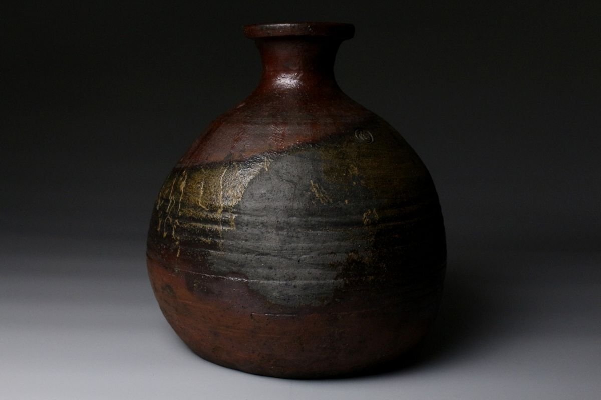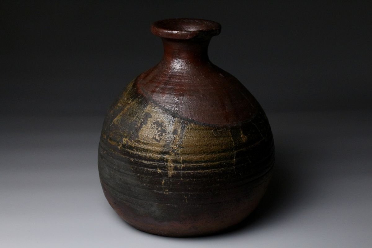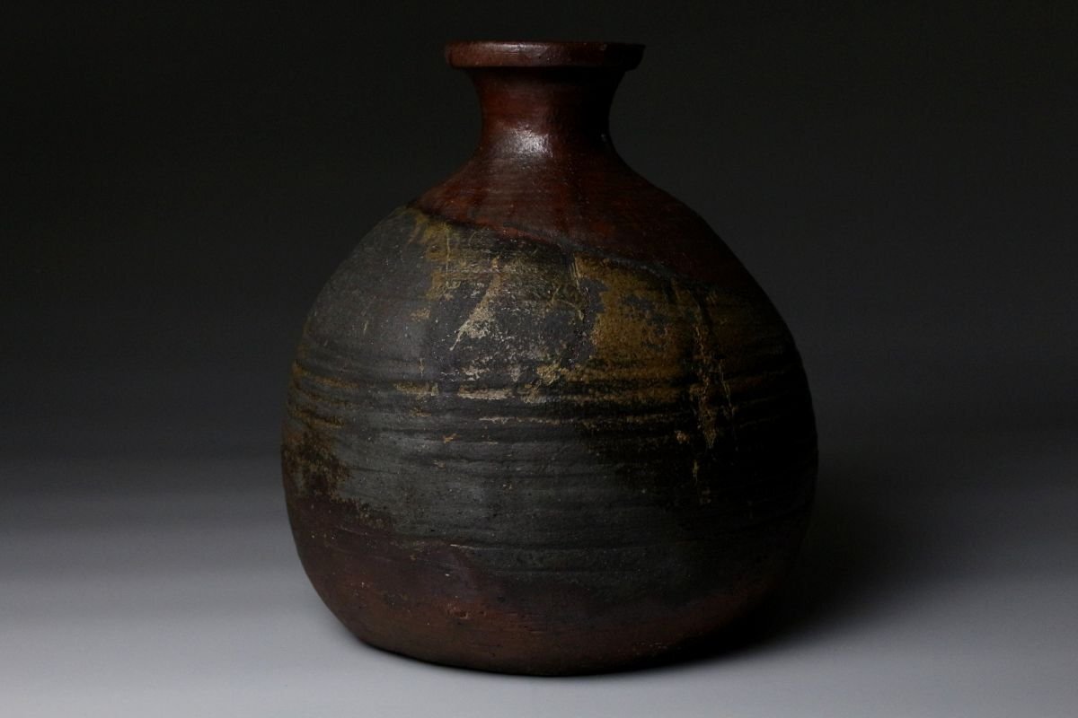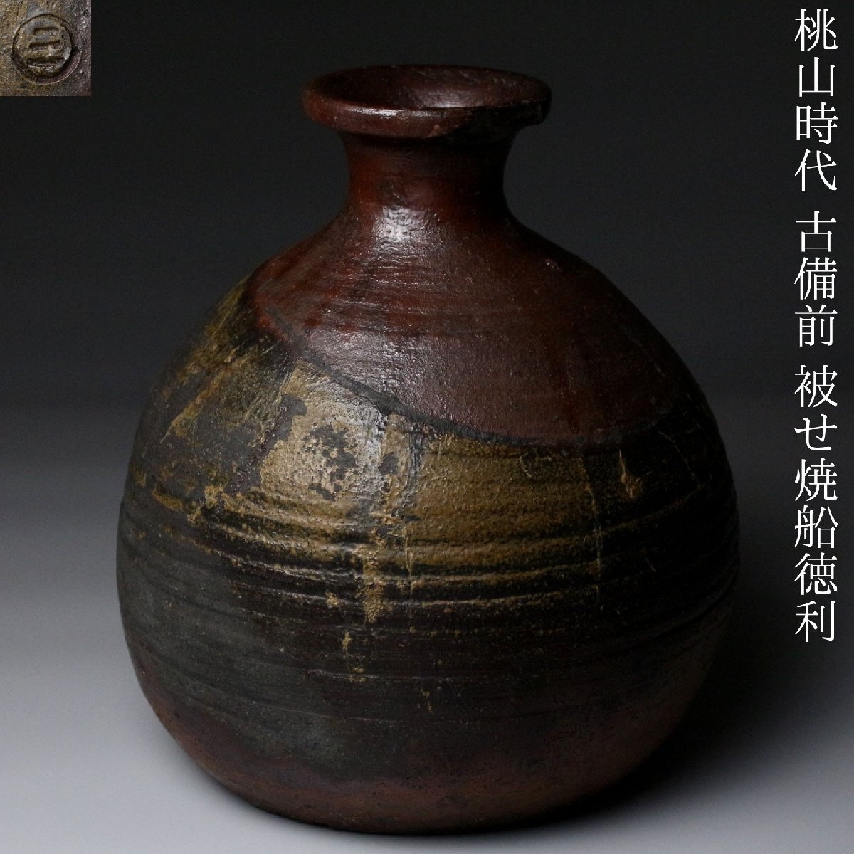 [.EE]25.11 25111731T* * * 商品詳細 * * * ここでしか出逢うことのできない唯一の美をご紹介させて頂きます。 桃山の気韻をそのままに伝える、堂々たる古備前・被せ焼の船徳利。 約22cmという存在感のある丈に、力強く立ち上がる胴。 焼成によって生まれた被せの景色は、自然釉と土味が絡み合い、 まさに桃山陶の野趣と緊張感をそのまま封じ込めています。 肩に残る窯印は、作域を物語る確かな手掛かりであり、 同時に当時の窯場の息遣いを感じさせる大きな魅力。 無釉ながら豊かな表情を見せる古備前ならではの深い火色は、 眺める角度ごとに表情を変え、艶やかさと荒々しさが共存します。 静かに飾っても、茶席や空間のアクセントとしても、 歴史と美意識を凝縮した一点として強い存在感を放つ作品です。 桃山陶の迫力と侘びを求める方に、心からお勧めできる逸品です。 ■サイズ/横20㎝×高22㎝ ■状態/経年による スレ、傷、汚れ、窯被、口の欠けがございます。 ※水漏れはございません。 ※写真にてご確認、ご了承の上ご入札下さい。