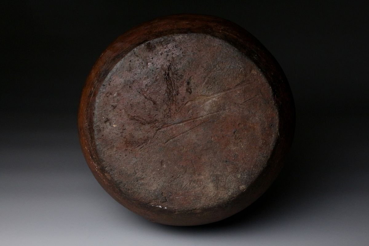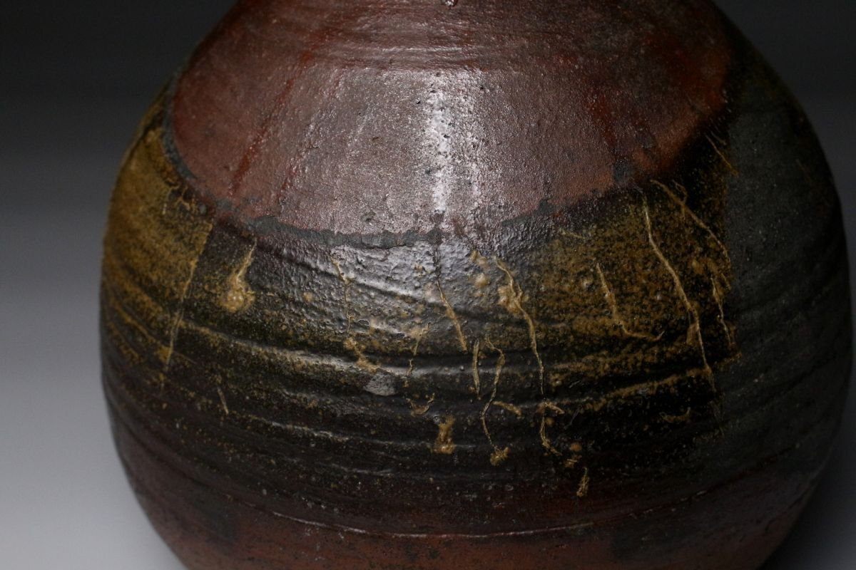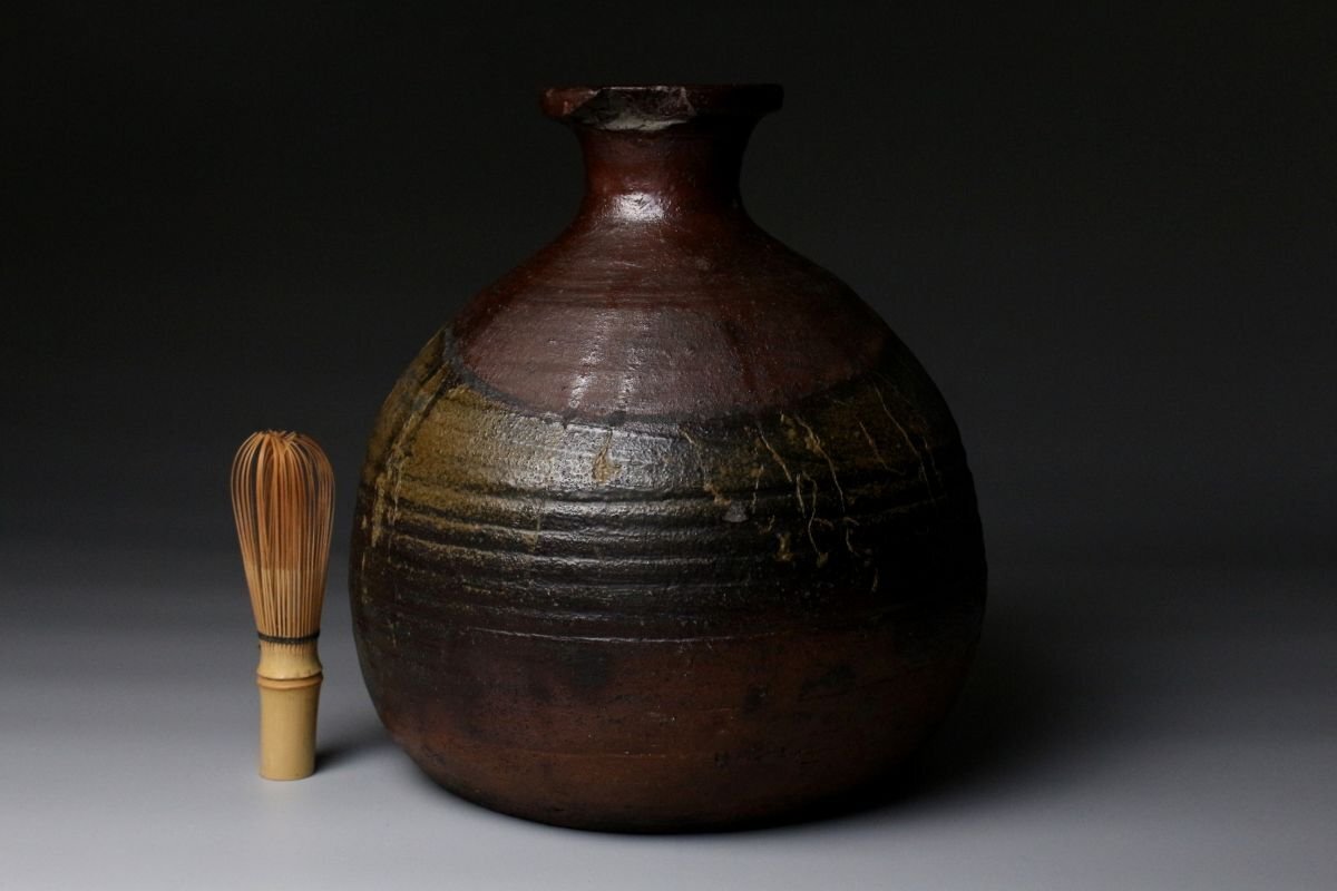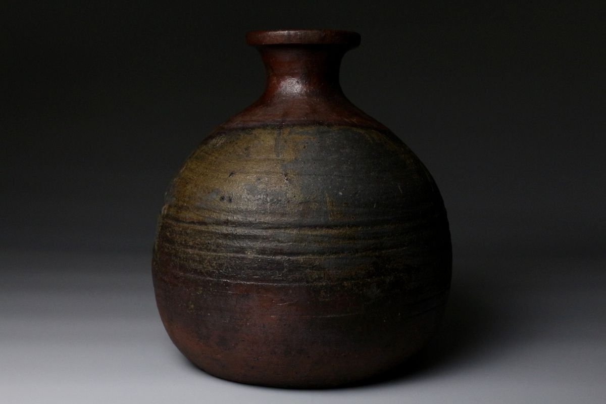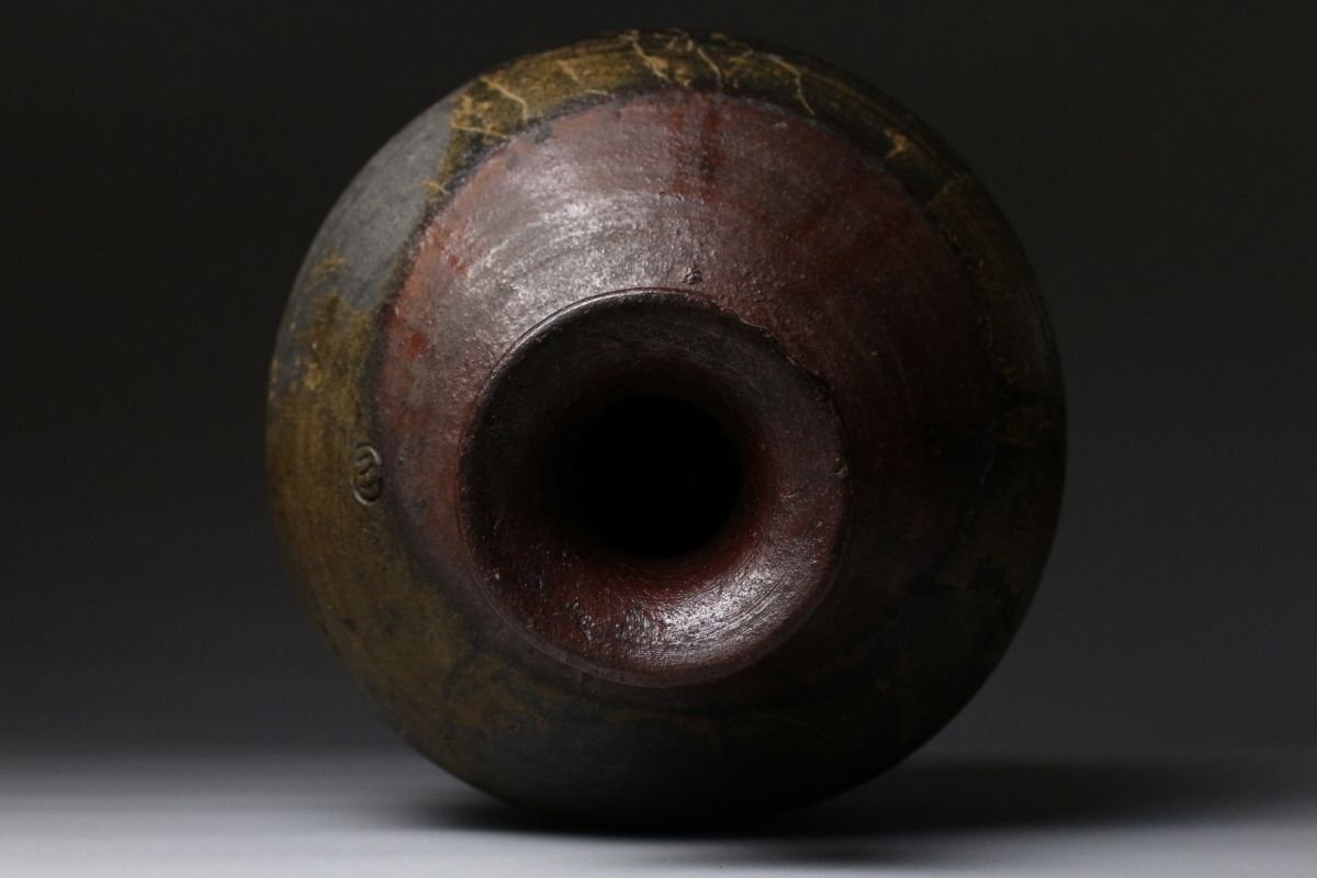 [.EE]25.11 25111731T* * * 商品詳細 * * * ここでしか出逢うことのできない唯一の美をご紹介させて頂きます。 桃山の気韻をそのままに伝える、堂々たる古備前・被せ焼の船徳利。 約22cmという存在感のある丈に、力強く立ち上がる胴。 焼成によって生まれた被せの景色は、自然釉と土味が絡み合い、 まさに桃山陶の野趣と緊張感をそのまま封じ込めています。 肩に残る窯印は、作域を物語る確かな手掛かりであり、 同時に当時の窯場の息遣いを感じさせる大きな魅力。 無釉ながら豊かな表情を見せる古備前ならではの深い火色は、 眺める角度ごとに表情を変え、艶やかさと荒々しさが共存します。 静かに飾っても、茶席や空間のアクセントとしても、 歴史と美意識を凝縮した一点として強い存在感を放つ作品です。 桃山陶の迫力と侘びを求める方に、心からお勧めできる逸品です。 ■サイズ/横20㎝×高22㎝ ■状態/経年による スレ、傷、汚れ、窯被、口の欠けがございます。 ※水漏れはございません。 ※写真にてご確認、ご了承の上ご入札下さい。
