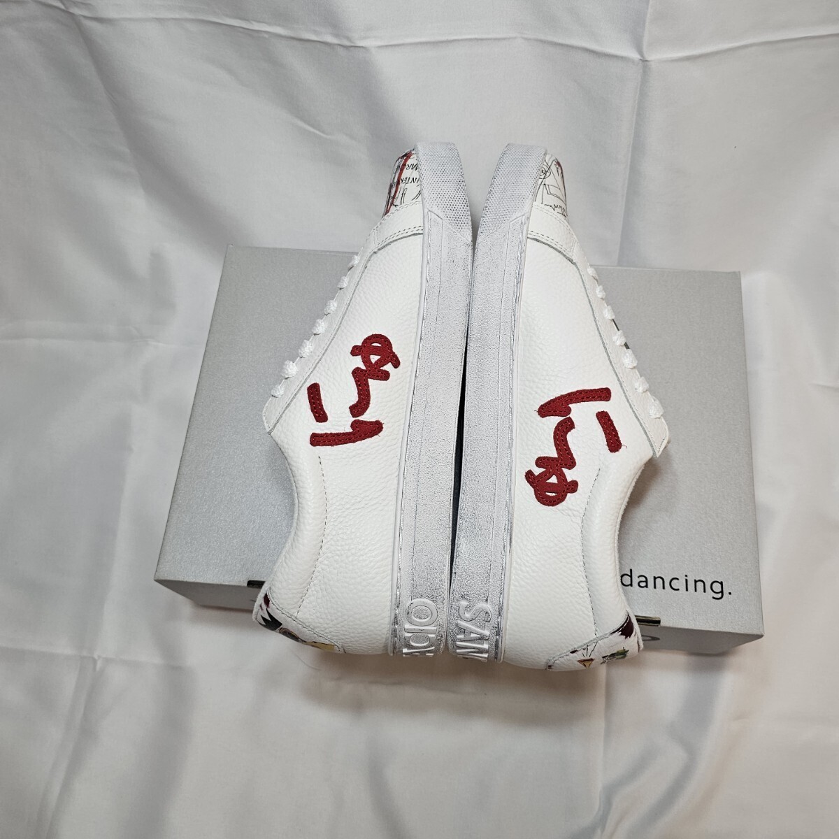 「彼がスニーカーアートを描いたら」というテーマのもと、職人が手書きのニュアンスを残し、ハンドメイドで製作した特別な一足です。