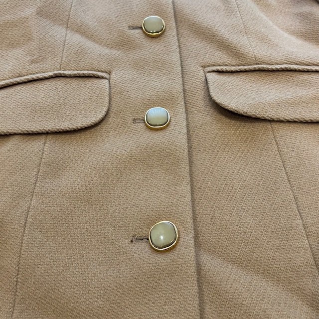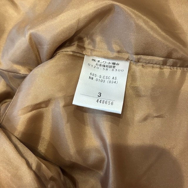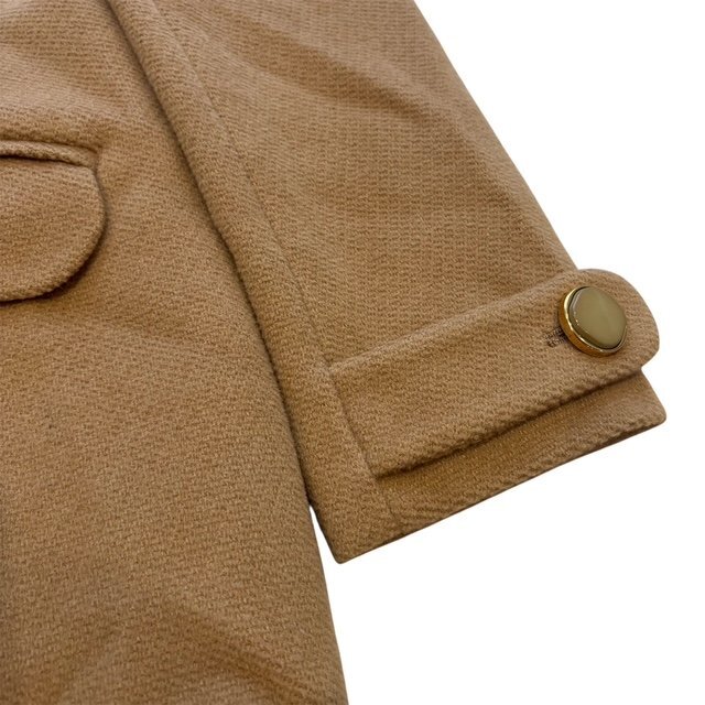 商品説明 キャメルカラーが上品なコートです。 ふんわりとしたファー襟が付いており、女性らしい印象で暖かく着用いただけます。 ゴールドボタンとポケットデザインがアクセントになっています。 詳細 ●サイズ:【3サイズ】 着丈88cm・身幅41cm・肩幅37cm・袖丈60cm(平置採寸) ●素 材:羊毛47%、アクリル29%、ナイロン20%、アンゴラ4% ●カラー:キャメル ●ランク:Bランク ●コンディション:若干の畳皺はありますが、他目立つ傷汚れ少なく程度は良好です。 |