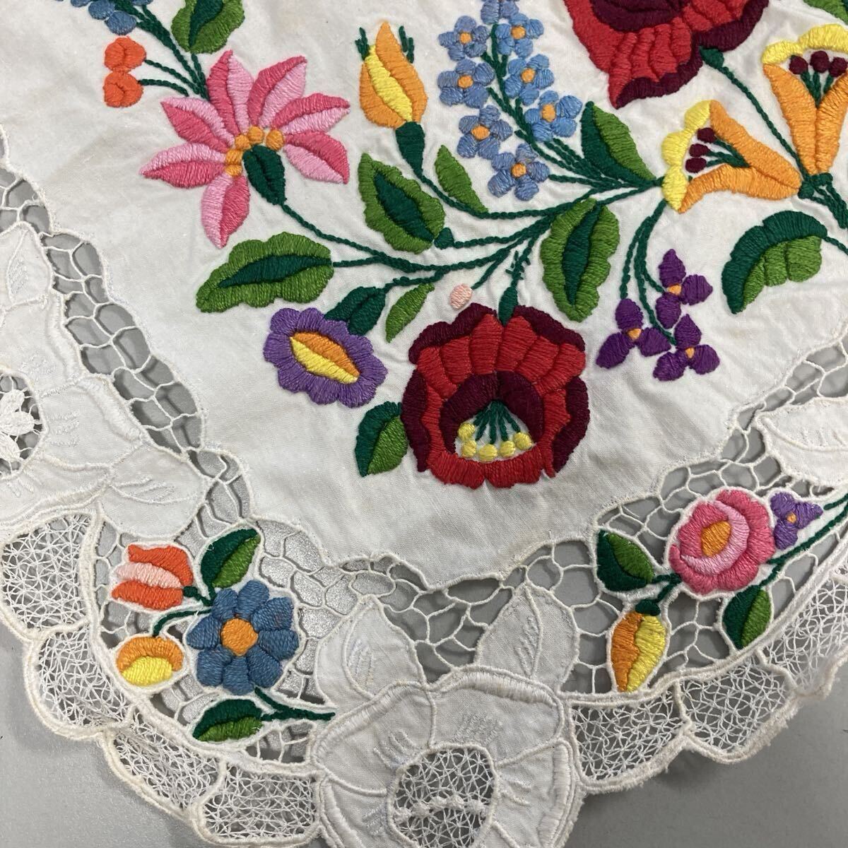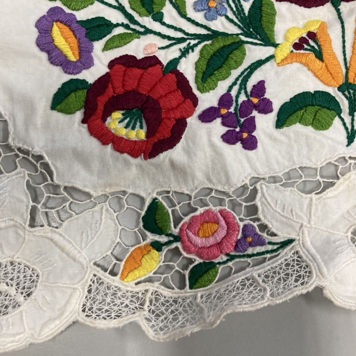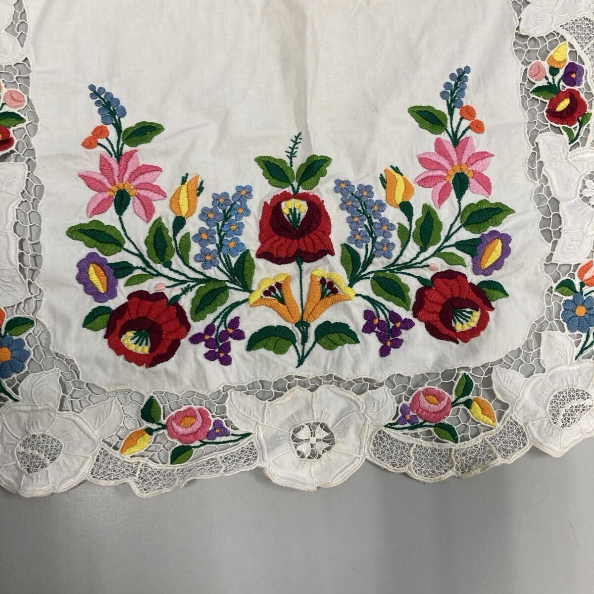 50年前にポーランドの現地で購入したポーランド刺繍のエプロン。日常では使用せずコレクションとして保管。少し紐のところに経年によるくすみがありますが全体として綺麗です。民芸的な作品です。刺繍も細かく繊細です。サイズ 丈 約73 横約 50センチ 紐で結ぶ方式。丈約 33 横35センチの2点セット