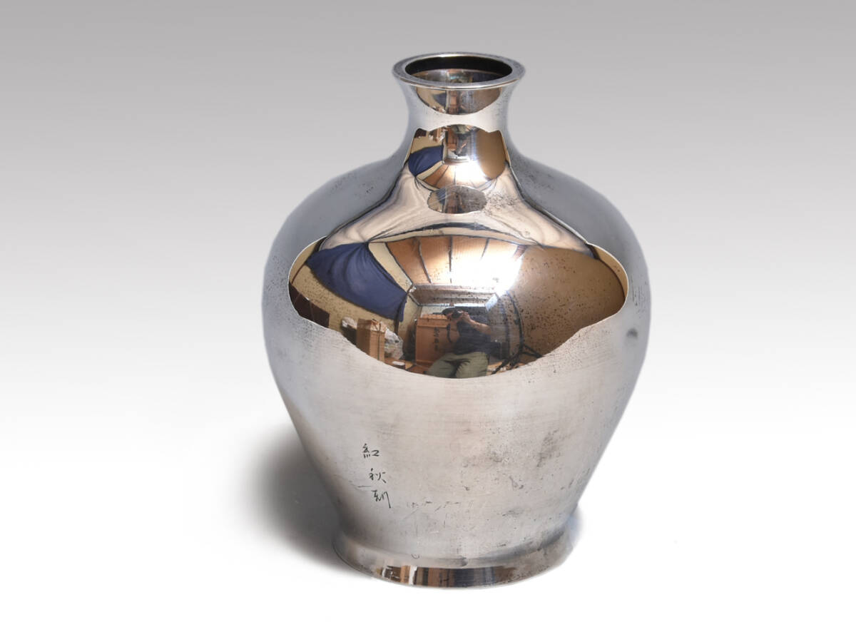 | 銀製 純銀 花入 彫金「万年青」文 紅秋(作) |