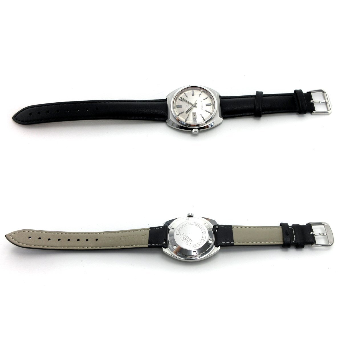 ■東京に本社をおく日本の精密・電子機器製造会社『シチズン(CITIZEN)』。 ■1970年代に若者向けに誕生したモデル『セブンスター V2』。 ■文字盤に「SEVEN STAR V2」のロゴあり。 ■ケースの角にエッジを利かせたラウンドトノー型。Cライン型。 ■古き良き時代のレトロなデザインがあたたかみを感じさせる時計です。 ■シリアル番号「00******」、1970年代製造品。 ◎オートマチックムーブ。 ◎カレンダー。 ◎スクリューバック。 ---【商品状態】--- ☆外装、クリーニング済、打ちキズや小キズがあります。 ☆ベゼルに割れがあります。 ☆風防にキズがあります。 ☆リューズ頭にも打ちキズがあります。 ☆バンド、新品(社外品)、尾錠も社外品。 ☆中古商品のため防水性の保障はつきませんのでご了承ください。 ※商品画像はお客様のモニター環境によっては色調が異なって見える場合がございますのでご了承ください。 |