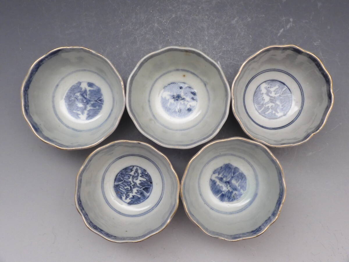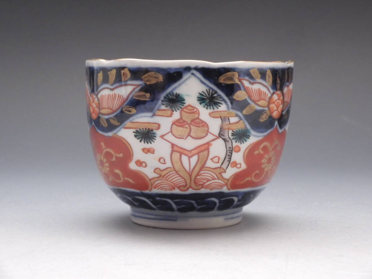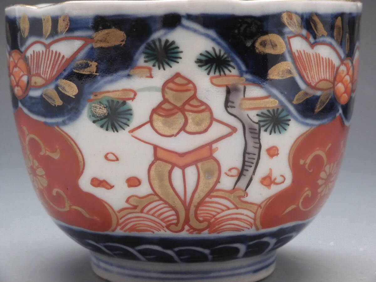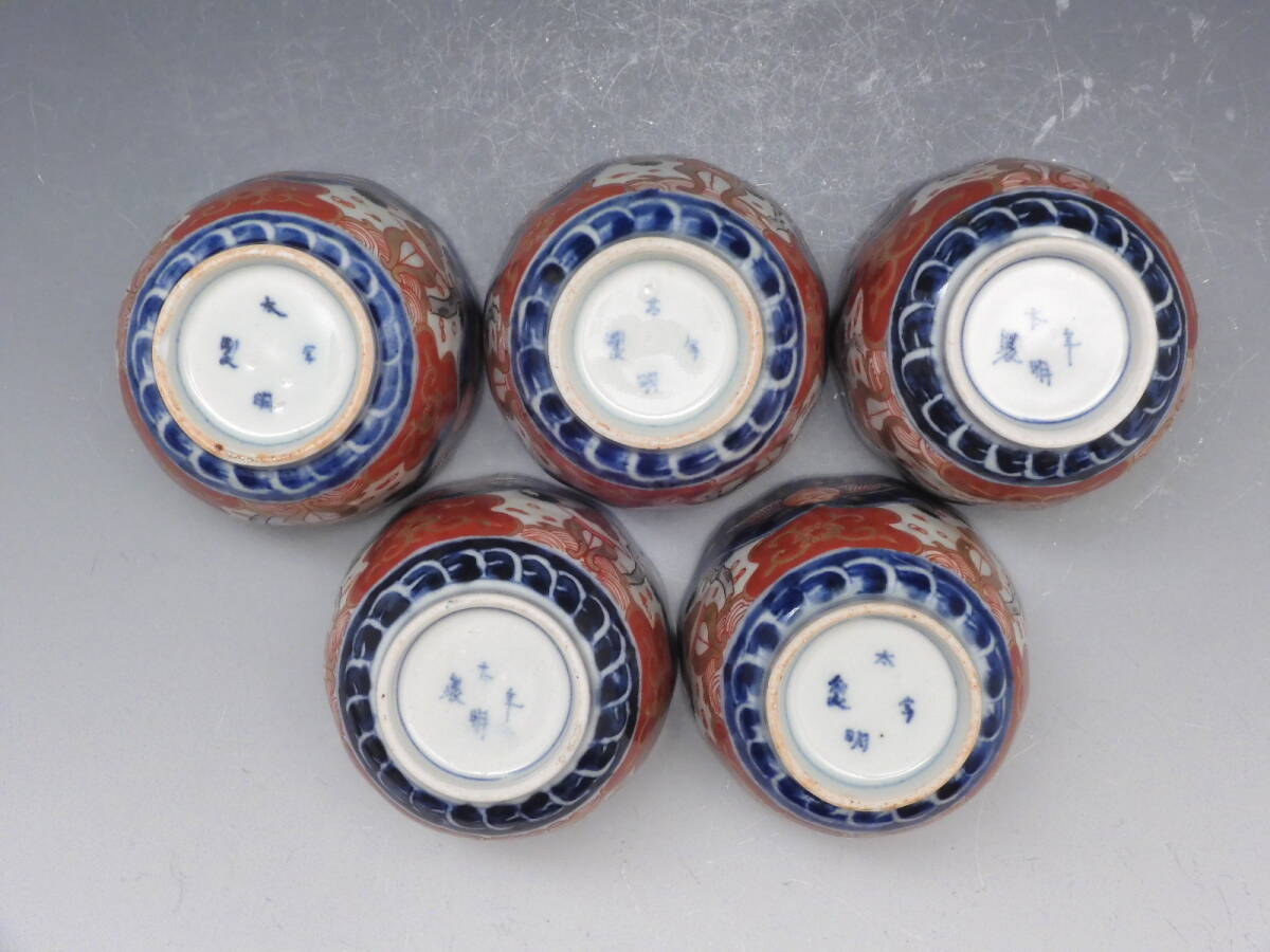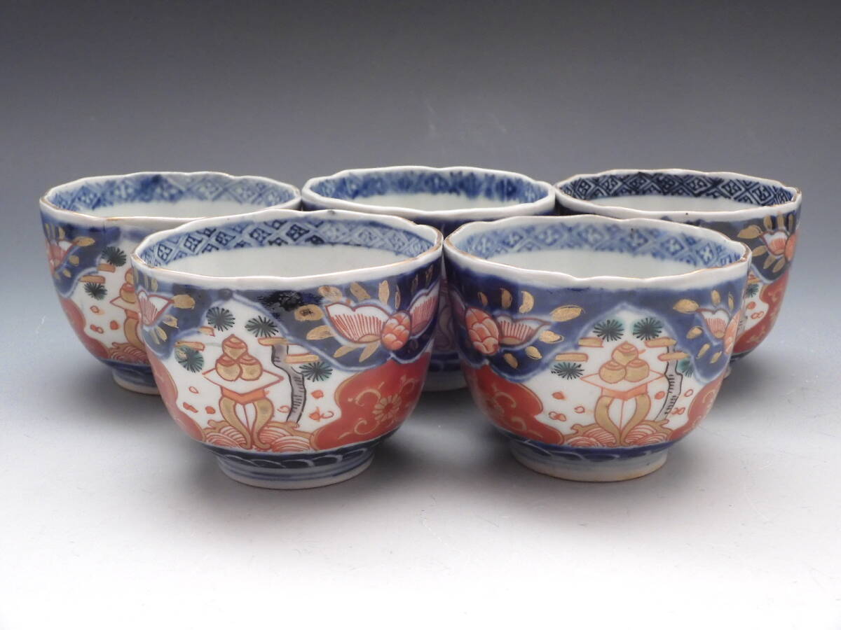 | ○梗○古伊万里 金彩色絵 宝珠 花草文 鉢 向付 蕎麦猪口 5客 懐石 江戸期 K271◇ |