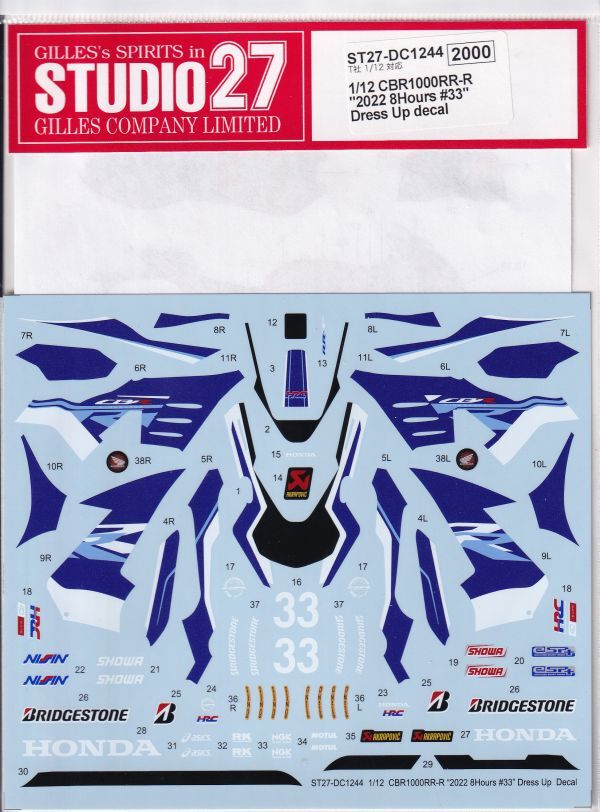 3D エキゾースト ホイール バックステップ類 2022の8耐デカール 1/12 HONDA CBR1000RR-R タミヤ 通常の塗料での塗装が可能です。 |