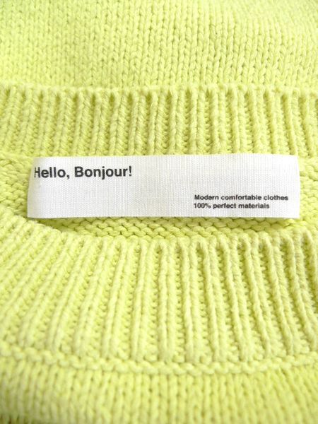 色 イエロー サイズ フリー 寸法 着丈64cm位 身幅62cm位 袖丈脇下から47cm位 (若干の誤差が生じてしまう場合がありますのでご了承下さい) 状態 4~5回程着用していますがよごれなどはなく良好です。元々ポコポコとしたやや凹凸のある生地感です。 素材 綿50% ナイロン50% 定価 30800円 1枚は勿論アウターのインナーにも使いやすいお色です。 以下HPより その名のとおりメンズのニットのような色展開、サイズ感で作りました。 7ゲージで表情もプレーンにして、アウターをきてもかさばらないようにしています。 女性らしい柔らかな色とのコンビネーション、滑らかな素材との組み合わせで、相反するものから生まれる女性らしい魅力を引き出してくれるアイテム |