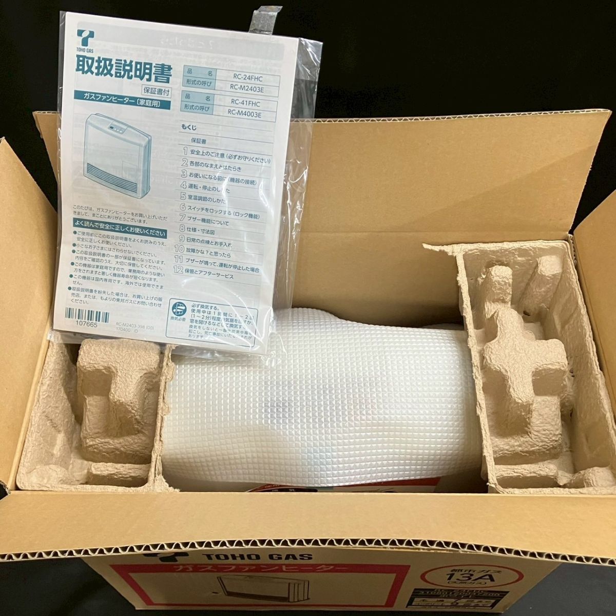 AKM148H 【佐川発送・140サイズ】 未使用 リンナイ TOHOガス 東邦ガス ガスファンヒーター RC-24FHC 都市ガス用 13A ホワイト系 | |||