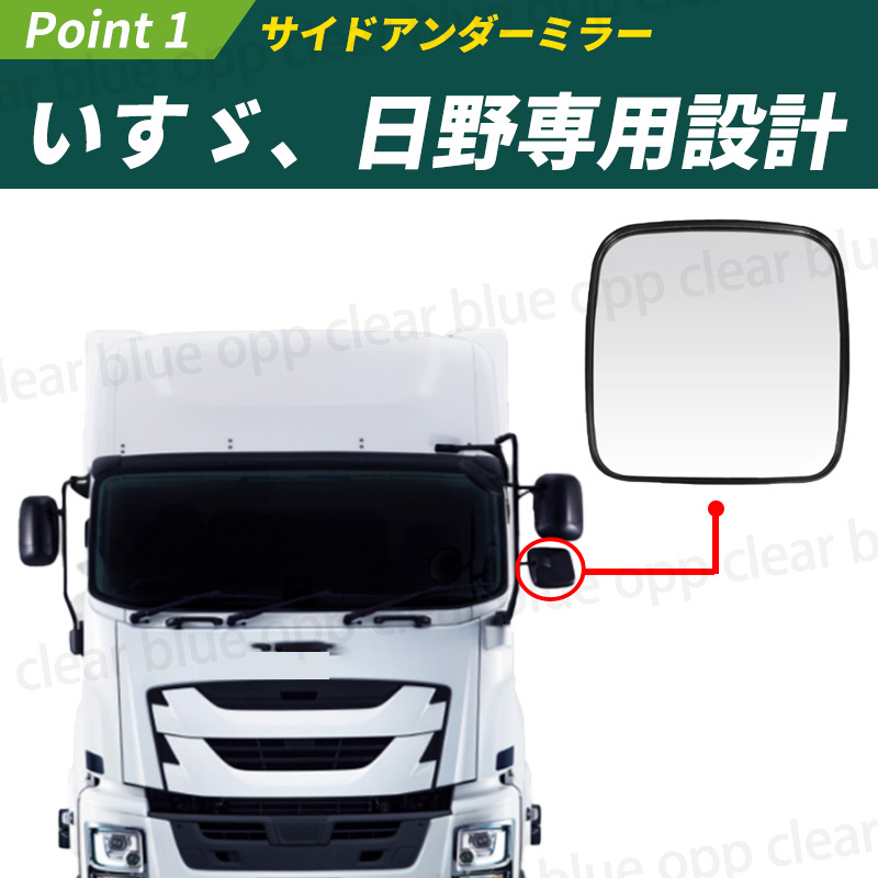| いすゞ、日野トラック専用設計のサイドアンダーミラー汎用品 |