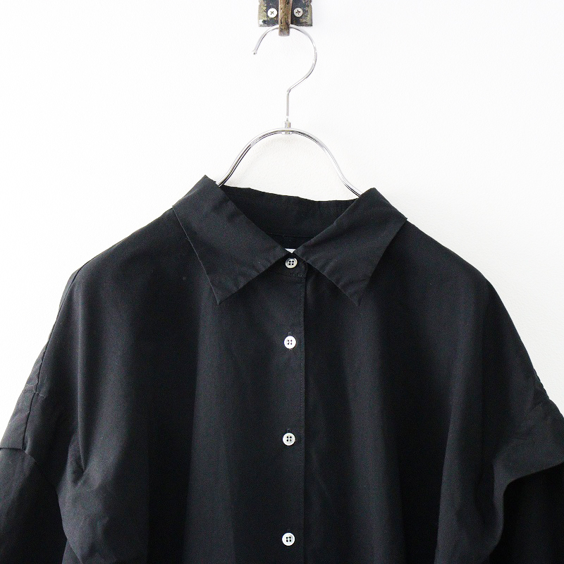 ミディウミソリッド MIDIUMISOLID タックワイドシャツチュニック\ブラック ブラウス ワンピース【2400014698817】