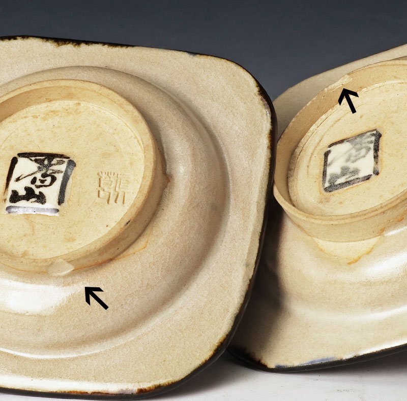 二客の底にホツあり(写真矢印部分参照)多少シミあり |