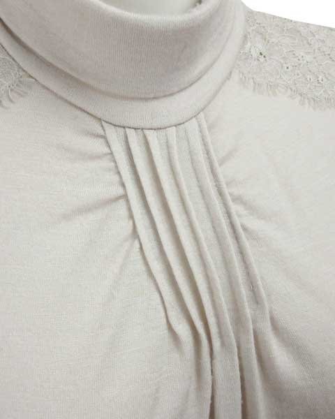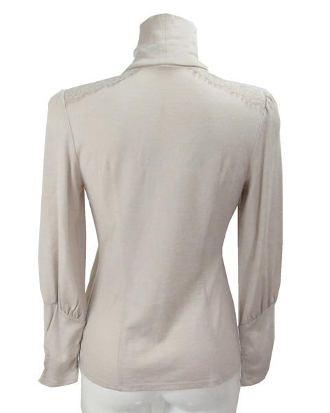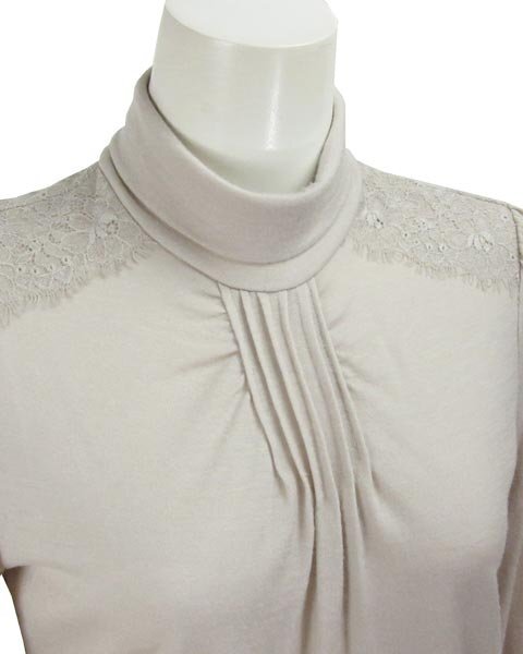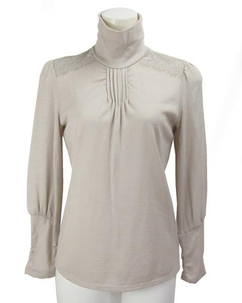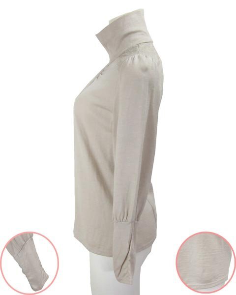 | 上品なデザインのハイネック。1枚でもインナーとしてもお使頂けます。薄手生地なので春先や秋口などで活躍してくれます。コーディネートしやすいお色目です。 |