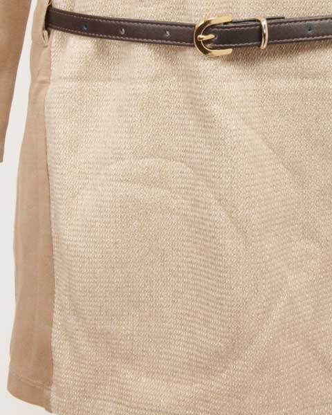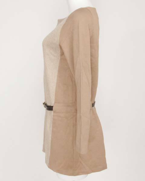 | ラムラメラッセルベルト付きチュニック♪異素材使いのベルト付きチュニックで、袖から後ろ身頃にかけてカットソー素材を使用し、前身ごろはラメ糸入りのニット素材で華やかで女性らしい雰囲気を演出します。ニット素材には裏地を使用し着心地も安心です。 |