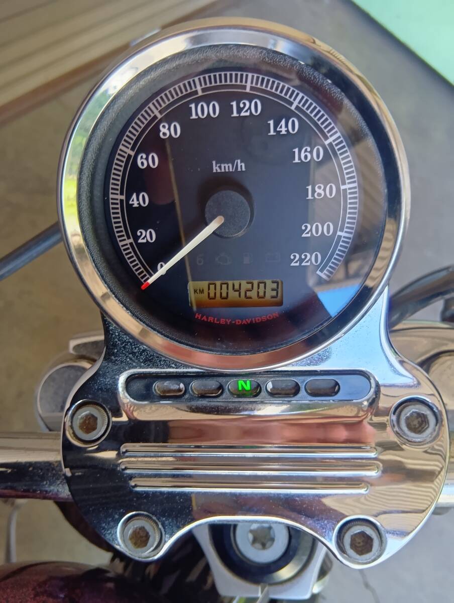 ハーレーダビッドソンのスポーツスターファミリーの1200V、セブンティーツーです。フレームナンバー5HD1LF3E3DC419○○○です。初度登録25年6月です。前オーナーが新車で購入して私で2オーナー目です。走行距離約4200キロの正真正銘の実走行です。エンジンの一発始動でもちろんエンジン、ミッション等の異音、ブレーキ等の不具合など一切ありません。ウインカー、リア周り、ハンドル、プレート、シートなどのカスタムはあります。マフラーは純正です。悪い点ですがタイヤは古いので交換をおすすめします。サビは多少あります。タンクはヘコミはないものの傷があります。画像にてご判断ください現在登録状態ですが車検は切れています。質問等は質問欄にてお願いします。落札金額以外に(配送料別)かかるものはありません。ノークレーム、ノーリターンでお願いします。評価の悪い方、低い方の入札はご遠慮ください。他の方にも声をかけていますのでオークションの取り消しをすることがありますのでご了承ください。
