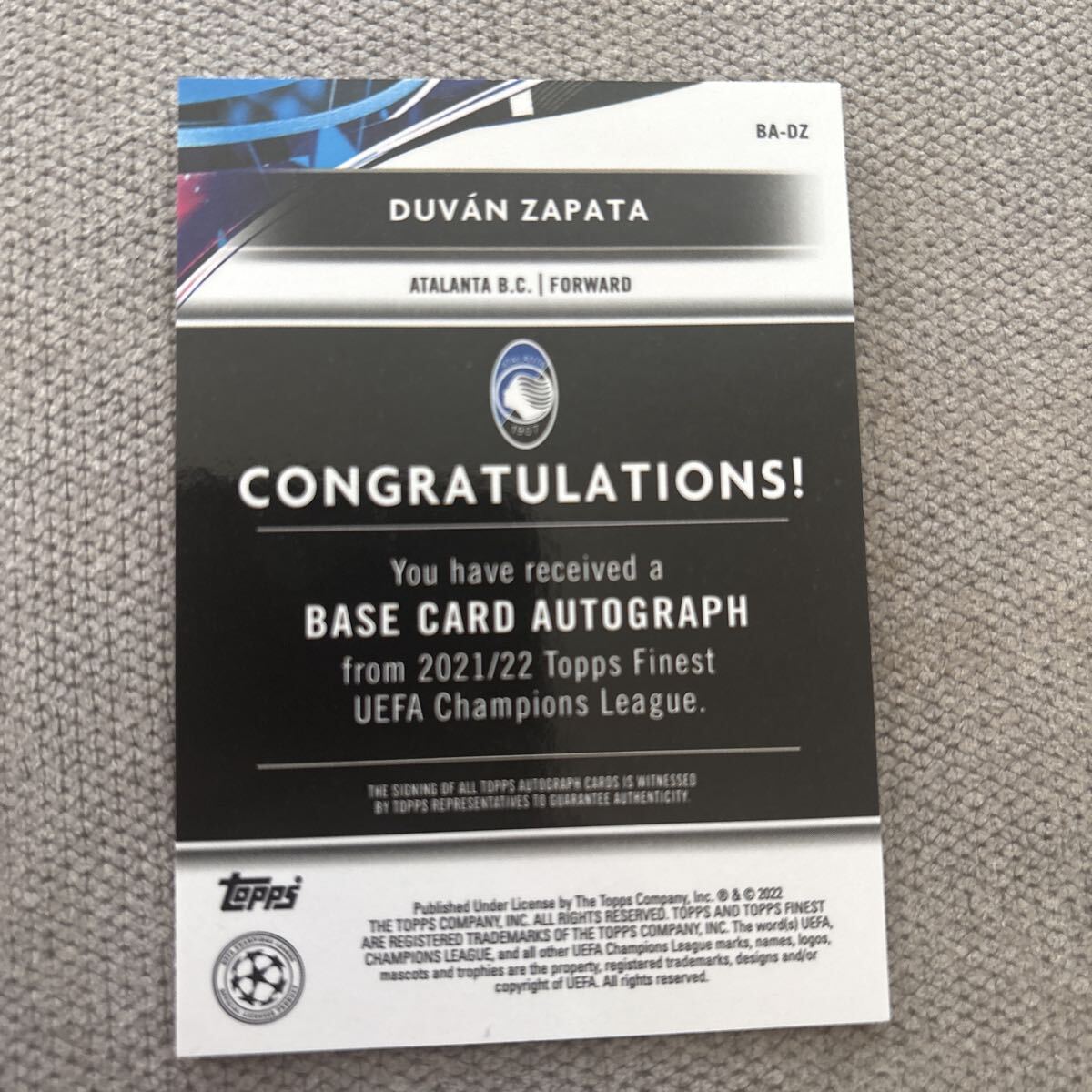 ★400円 ドゥバン・サパタ DUVAN ZAPATA topps finest autograph 直筆サインカード アタランタ panini