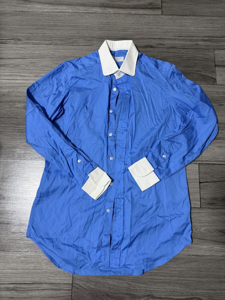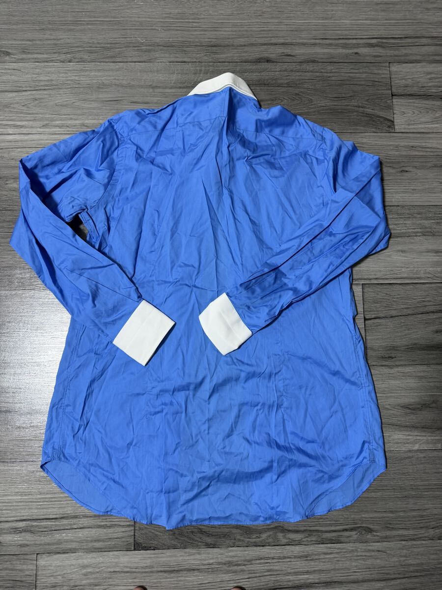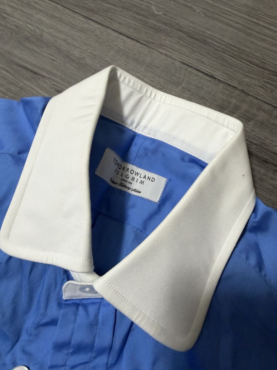 ・アイテム【TOMORROW LAND PILGRIM トゥモローランド ピルグリム 長袖シャツ クレリックシャツ ブルー ホワイト コットン バイカラー 希少サイズ 40 L ビジネス プライベート】