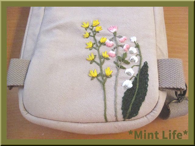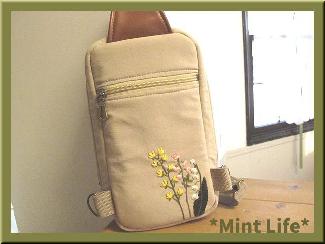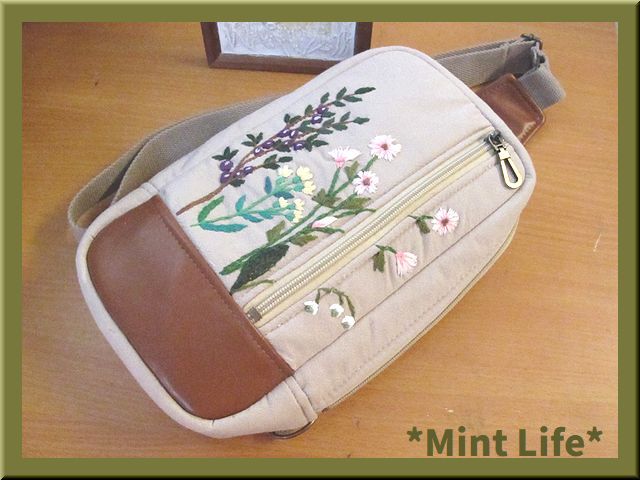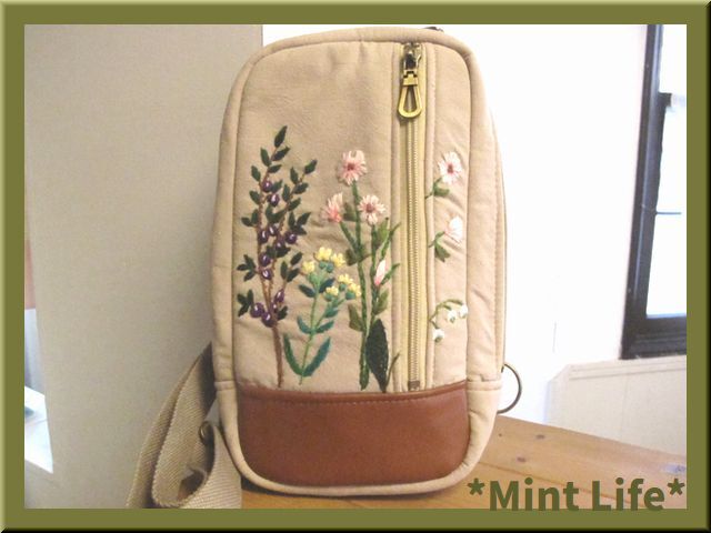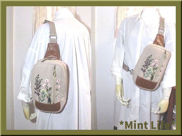 | *Mint Life* ハンドメイド 「ハーフリネンボディバッグ」手刺しゅう | |||