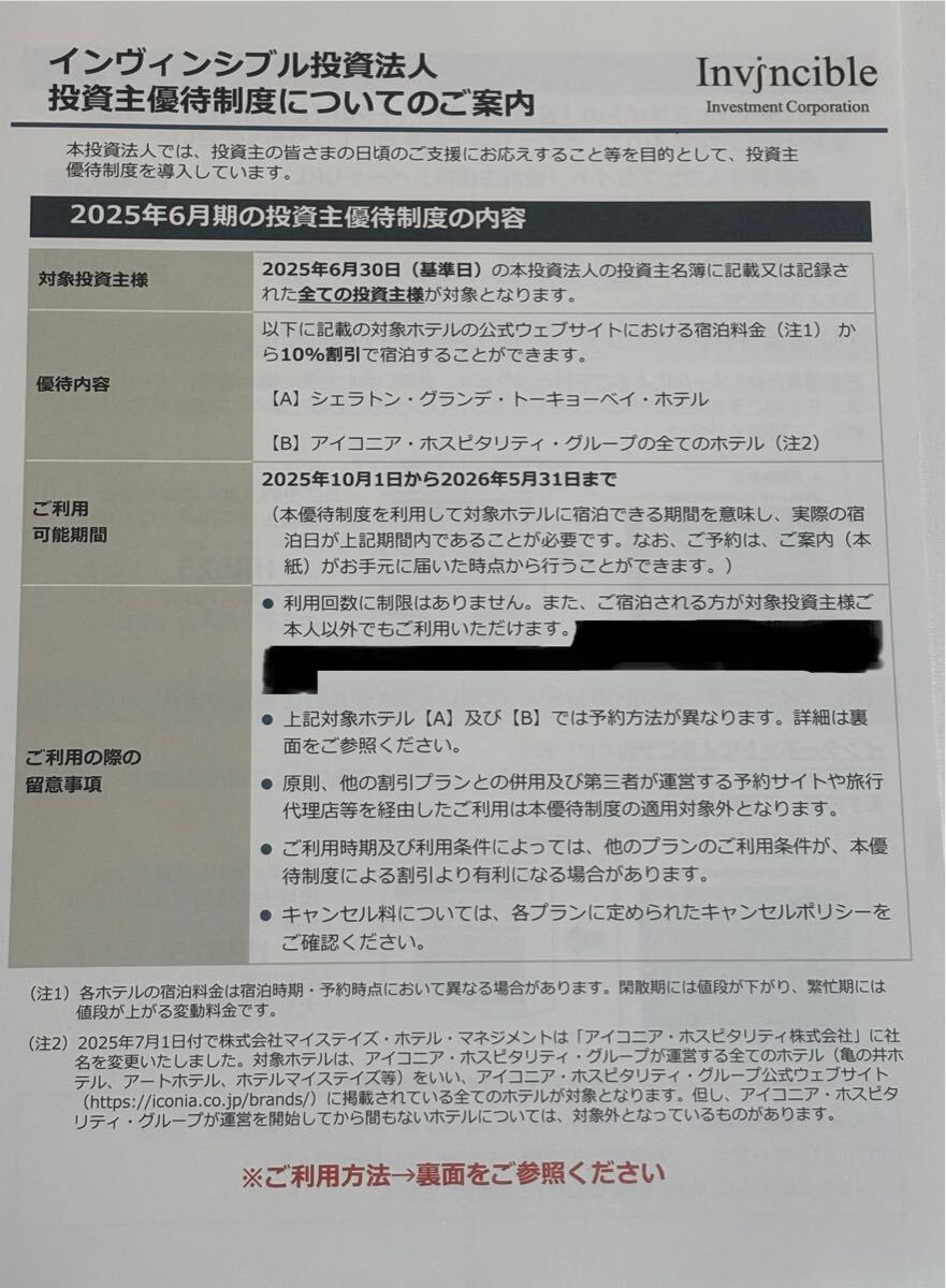インヴィンシブル投資法人の株主優待制度です。| 出价者 | 信用 | 价格 | 时间 |