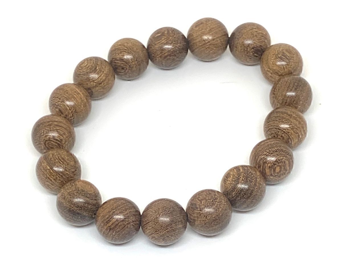 (初心者でもブレスレット作りはとても簡単です。通して結んで結び目を珠の中に隠すだけ)