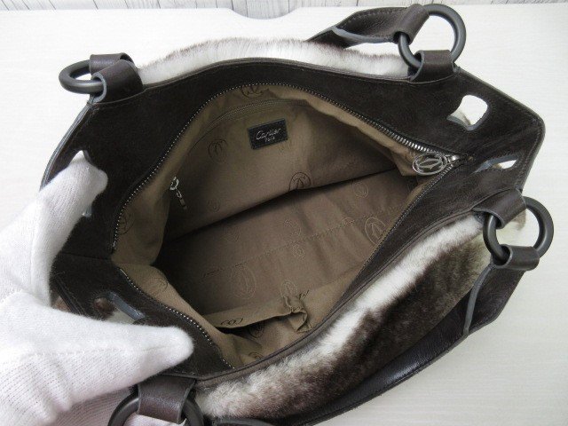 | 美品 Cartier カルティエ マルチェロ ハンドバッグ バッグ ラビットファー×レザー 茶系 92433 | ||