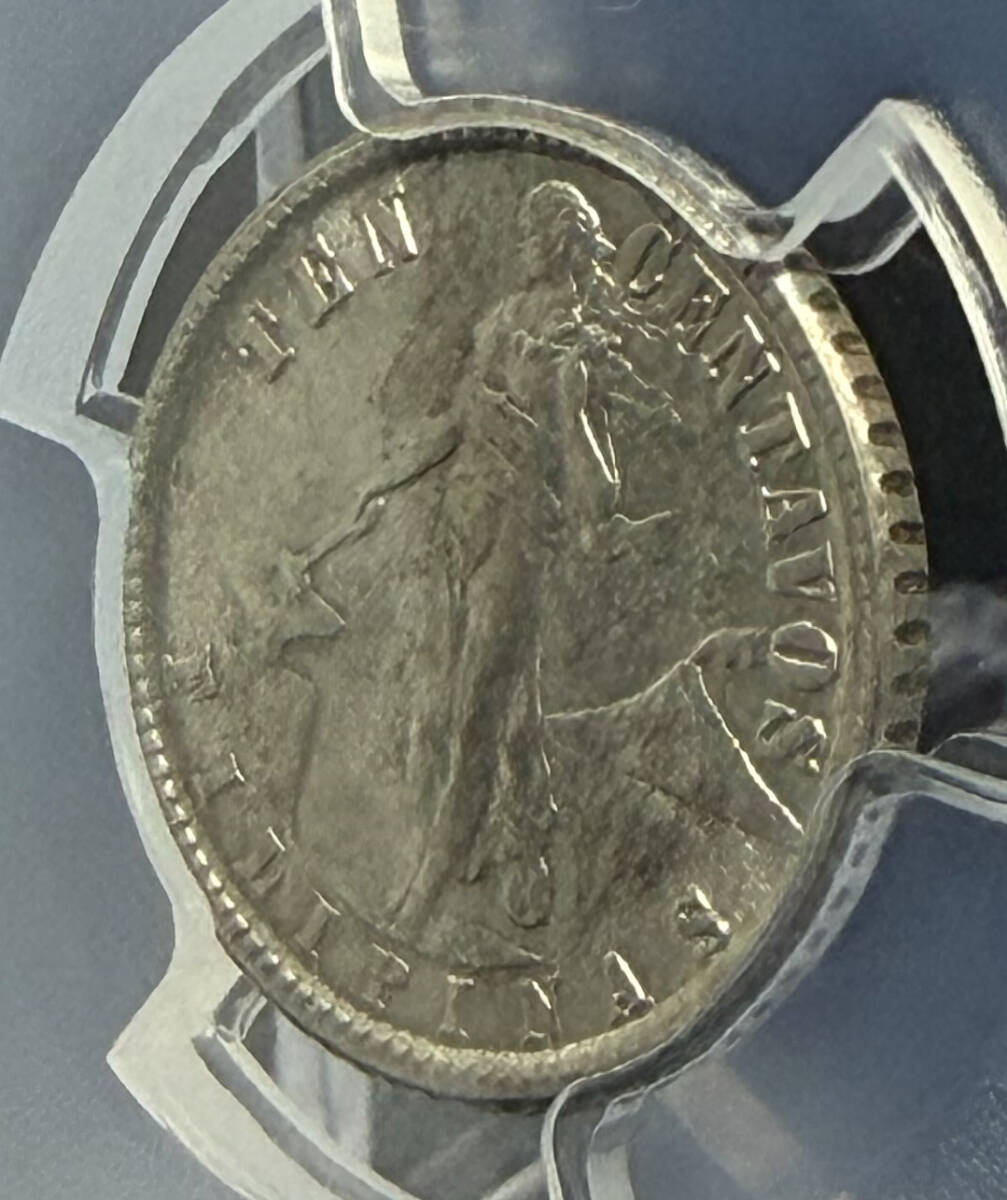 【1918-S 米領フィリピン 10センタボ銀貨 スモールタイプ PCGS MS62 U.S. Philippines 10 Centavos Small Type】