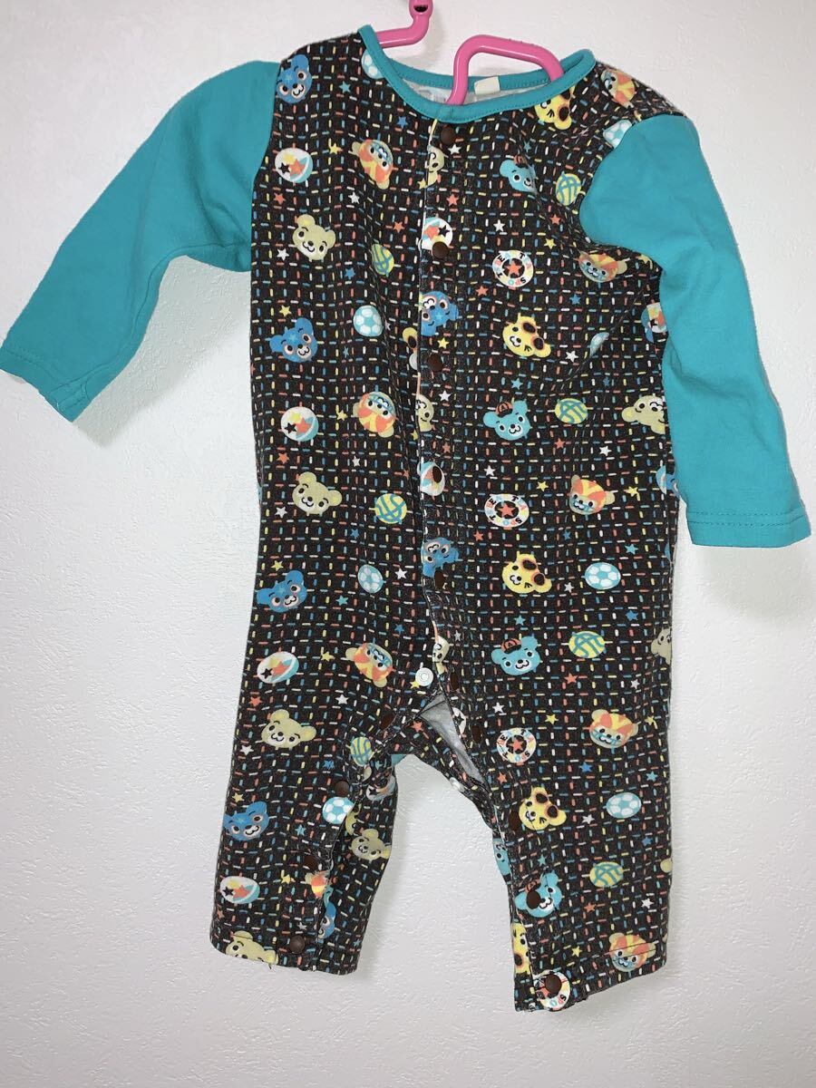 カラフルな総柄が可愛らしい長袖ロンパースです。袖部分はターコイズブルーの切り替えデザインで、男の子にも女の子にもおすすめです。前開きスナップボタンで着脱しやすく、おむつ替えもスムーズに行えます。| 出价者 | 信用 | 价格 | 时间 |