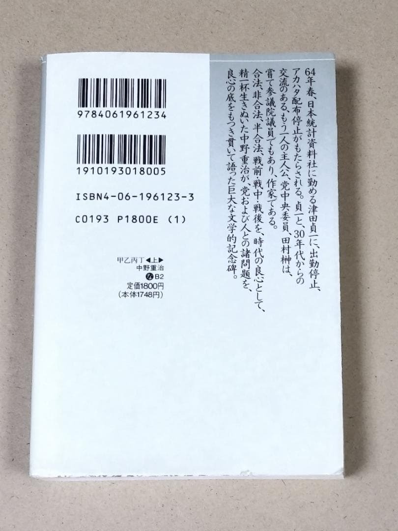 | 商品説明 | 表紙スレあり、ページ天小口ヤケあり ページ中間部一箇所開き跡あり 本文切り抜き書き込み等なく良好 「甲乙丙丁 上」 中野重治 定価: ¥ --- #中野重治 #本 #日本文学/評論・随筆 64年春、日本統計資料社に勤める津田貞一に、出勤停止、アカハタ配布停止がもたらされる。貞一と、30年代からの交流のある、もう1人の主人公、党中央委員、田村榊は、嘗て参議院議員でもあり、作家である。合法、非合法、半合法、戦前・戦中・戦後を、時代の良心として、精一杯生きぬいた中野重治が、党および人との諸問題を、良心の底をもつき貫いて語った巨大な文学的記念碑。 |