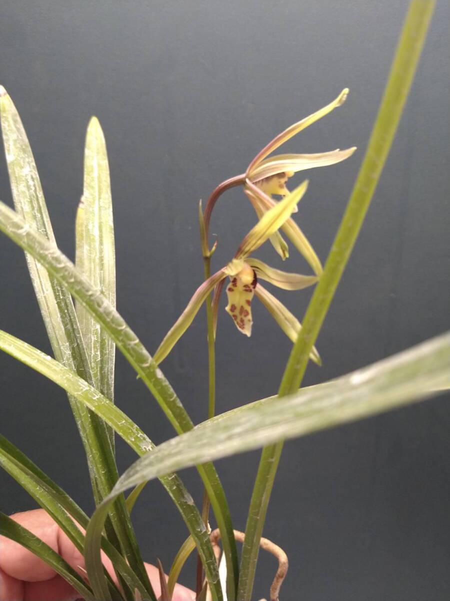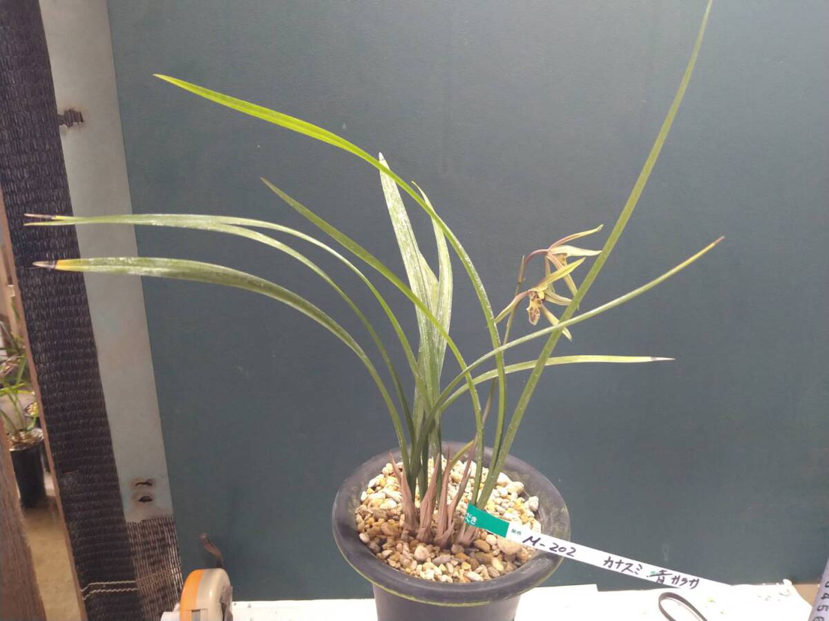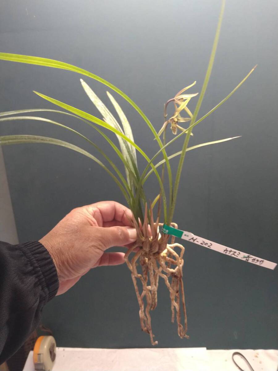 | M-202:日向寒蘭 ・栽培棚整理品・栽培品:青サラサ花種(花付き) | |