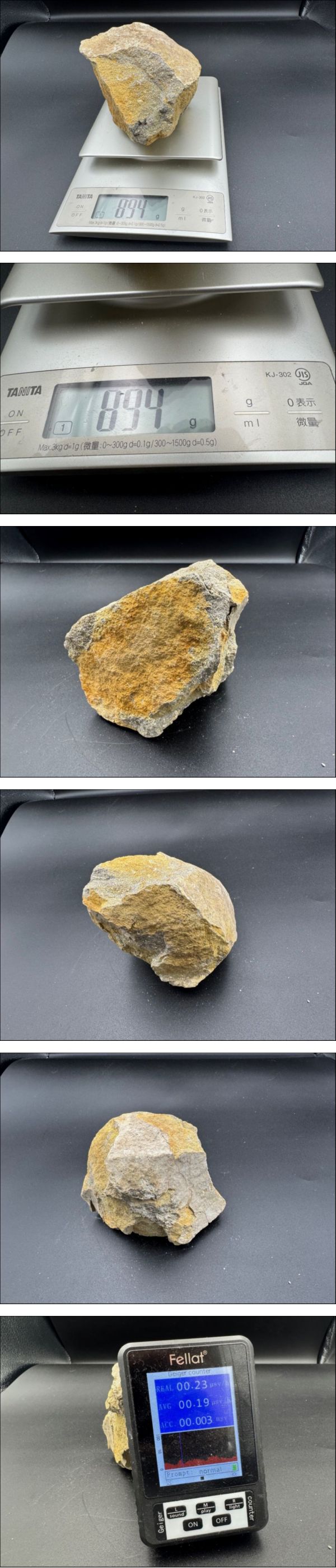 | 【希少】台湾北投石 894g 北投石 台北北投石 北投温泉 ラジウム温泉 玉川温泉 大変貴重な鉱石です。 下記ウィキペディアより、 出典: フリー百科事典『ウィキペディア(Wikipedia)』 北投石(北投温泉産出)。国立台湾博物館収蔵 北投石(玉川温泉産出)。秋田大学附属鉱業博物館収蔵 北投石(ほくとうせき、英語: hokutolite)は北投温泉で発見された鉱物で、学術的には独立種とはいえず「含鉛重晶石」と呼ばれ重晶石の亜種として扱われる。世界でも台湾台北市北投区の北投温泉と日本秋田県の玉川温泉[注釈 1]からしか産出しない。 1905年(明治38年)に地質学者岡本要八郎が台北州七星郡北投街の瀧乃湯で入浴した帰りに付近の川で発見した。その後、この鉱物がラジウム等を含み放射性を持つ北投温泉独特の鉱物(後に玉川温泉で産出する物も同じ物であると認定された)であるとされた。1913年(大正2年)に東京帝大の鉱物学者神保小虎によって命名され、1933年(昭和8年)に台湾総督府によって天然記念物に指定された。 玉川温泉産出のものは神保小虎によって北投石と同じものであると認定される以前は澁黑石と呼ばれていた[2]。菅沼市蔵は、玉川温泉産の北投石を区別するため、「秋田北投石」、"Akita Hokutolite" と表記している。 台湾(中華民国)でも、2000年に「自然文化景觀」に指定されている。 北投石の組成は (Ba,Pb)SO4 で、およそBa:Pb=4:1の割合で含まれる。放射性のラジウムを大量に含む温泉沈殿物重晶石(硫酸バリウム)である。 岡本が北投石を発見してから100年目にあたる 2005年に、台北市において北投石発見100年を記念する国際会議が開催され、日本から30人以上が参加した[5]。 北投石の成分分析 1908年3月、東京帝国大学理学部(当時は東京帝国大学理科大学と呼ばれた)の垪和為昌は神保小虎教授から北投石の成分分析を依頼された。この分析を当時化学科の1年生だった飯盛里安、柿内三郎、靑木芳彦の3名の学生に命じた。この際、垪和はこの鉱物にウランを含んでいないか綿密に調査するように指示を与えた[6]。飯盛によると、ラジウムを含む鉱物に通常含まれる親核種のウランが検出されなかった。方法を変えて再三再四試みたが、それでもウランは検出されなかった。これについて垪和は「この鉱物は水成鉱物であるからラジウムだけが偶然ウランから離れて沈積したものであろう」と見解を述べた[7]。斎藤信房はこれは今日から見ても卓見であろう、と述べている[8]。この分析値は日本鉱物誌第二版に掲載された。飯盛はこの分析によって放射化学に興味を持ち、以後放射化学への道に進むことになった[7]。 北投石中のラジウム含有量は1929年に吉村恂が測定した。結果は北投温泉産のものは1.73×10-7% 玉川温泉産のものは1.22×10-7% であった[9]。飯盛によると、この鉱物が放射平衡にあるウラン鉱物であると仮定すると北投温泉産のものはウランをUO3として約0.61%[注釈 2]含むはずであり、平衡に達していなければさらに多くのウランを含むはずなので、化学分析で十分に検出可能である。しかるに垪和の予想に反してウランが検出されなかったので、垪和は慎重を期して3人の学生に分析を命じてその平均値を採用し、日本鉱物誌に掲載した[7]。下表は日本鉱物誌第2版 (1916年) に掲載された飯盛らによる北投石(北投温泉産)の分析結果[11]。この分析結果は、のちの研究者たちに高く評価されている | ||