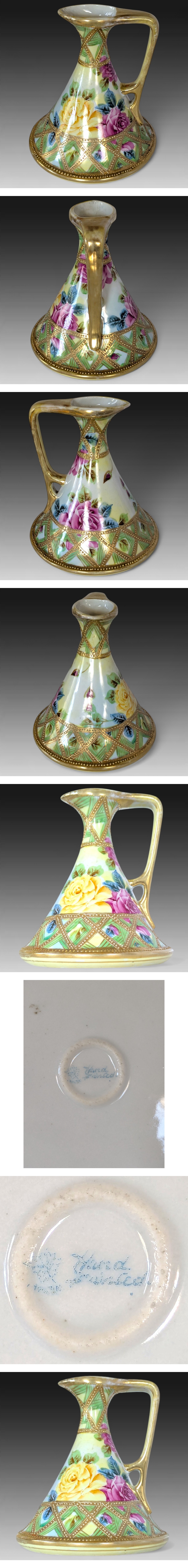 | 【希少】オールドノリタケ メープルリーフ印 エジプシャンジャグ 手描き薔薇 盛金彩 明治〜大正期 花瓶 飾り壺 1115 |
