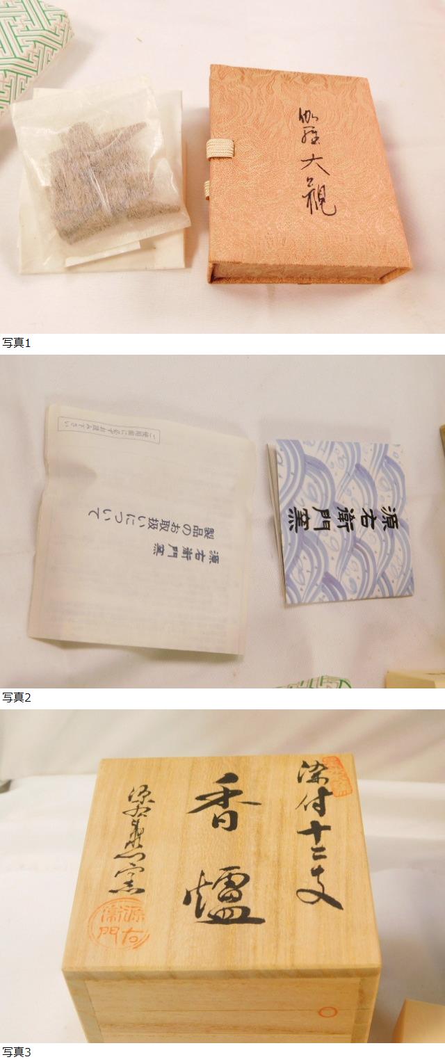 ★付属品… 木箱 源右衛門窯? 香炉 染付十二支 と書いてあるように見えます。その他付属品もオマケとお考え下さい。