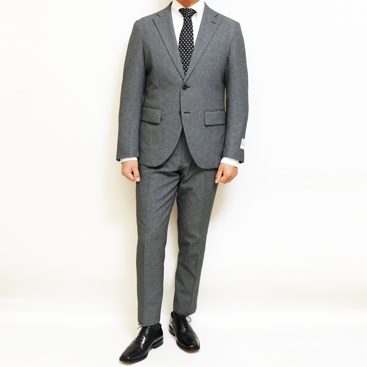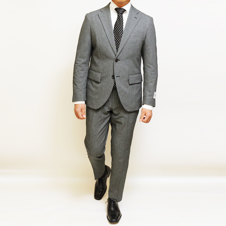 | デザイン | フロント2つボタン・サイドベンツ・肩パットレス・アンコン背抜き仕立て ズボンはワンタックローライズパンツ |