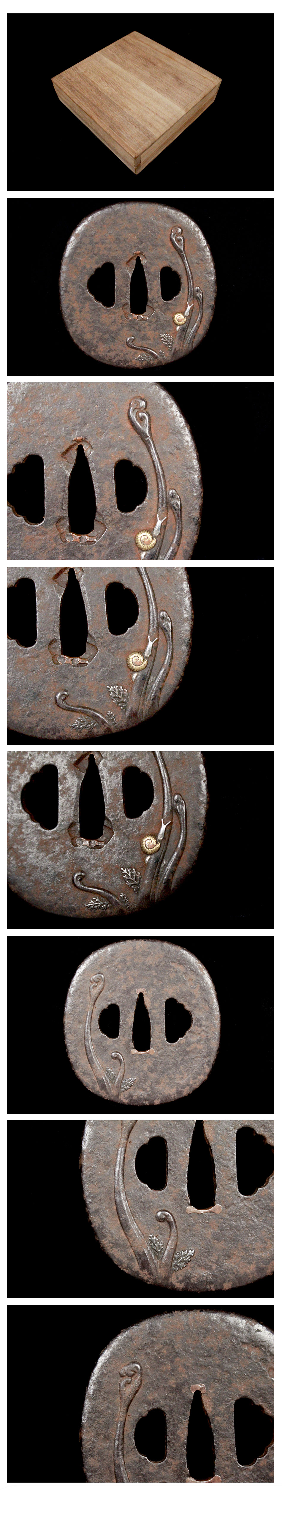 | 【喜楽】珍品 蕨に蝸牛 鍔!! 木箱 刀装具武具!! 112738 | - |