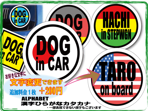オリジナル【 DOG on board 】 犬が車に乗ってます! ステッカーです☆ 業務用溶剤インクを使用した 雨や直射日光に強い じょうぶな耐水ステッカー! 屋外OK! 耐水(防水)・耐候仕様です。 クルマの後ろなどにペタリと貼ってください! (○○ on BOARD とは?・・・ 正式な英語では”車に乗っています”は ○○ in CAR ではなく、○○ on BOARD となります) ■サイズ:直径 10cm ■枚数:1枚 耐水・屋外耐候 塩ビシート仕様 Made in JAPAN ・ 日本製 □□□□□□□□□□□□□□□□□□□□□□□□□□□ 別サイズ ・直径 15cm 1枚 1,500円 ・直径 20cm 1枚 2,000円 マグネット仕様 ・直径 10cm 1枚 1,150円 ・直径 15cm 1枚 1,650円 ・直径 20cm 1枚 2,150円 も出品中です。ご希望サイズ・仕様が出品されていない場合は、質問欄にてお問い合わせください。新たに出品いたします。落札後のサイズ変更はできません。必ずご希望のサイズ・仕様にて落札ください。 ※「DOG in CAR」バージョンもございます どうぞよろしくお願いします。 ★お休みのお知らせなどがある場合がございますので、 お手数ですがご入札前に必ず自己紹介欄をご覧くださいませ。よろしくお願いします★ ![]() | ||||||||||