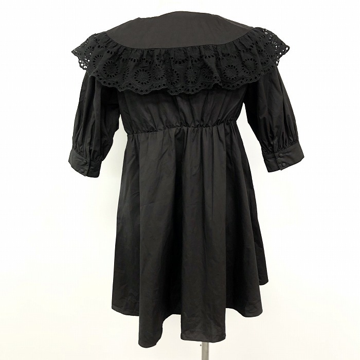 | 商品タイトル | 【新品】NICE CLAUP ナイスクラップ F レディース シャツ生地 ワンピース 裏地無し レースカラー フレアスカート 5分袖 綿100% ブラック 黒 |